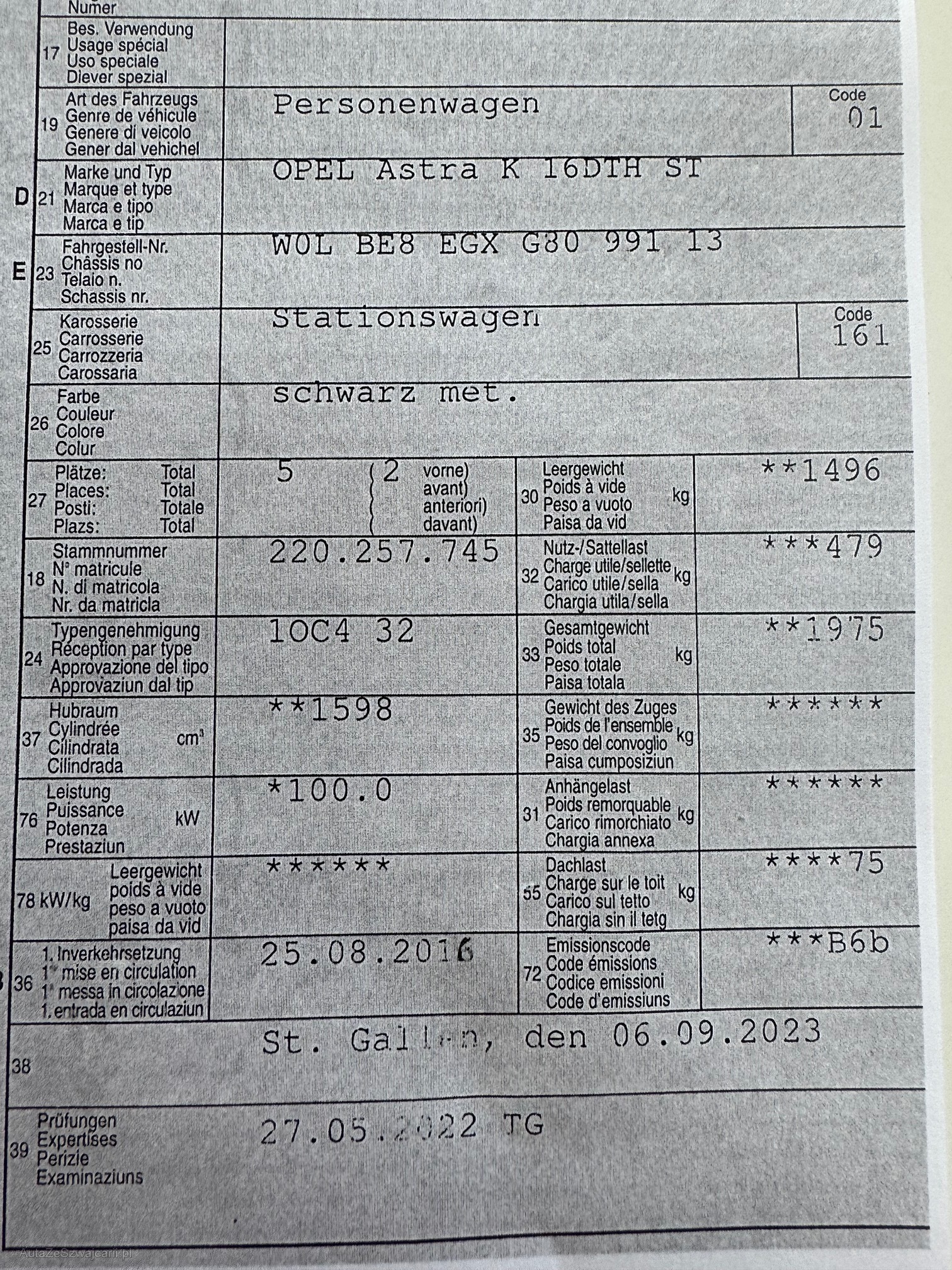 OPEL Astra K 16DTH ST