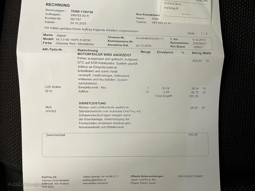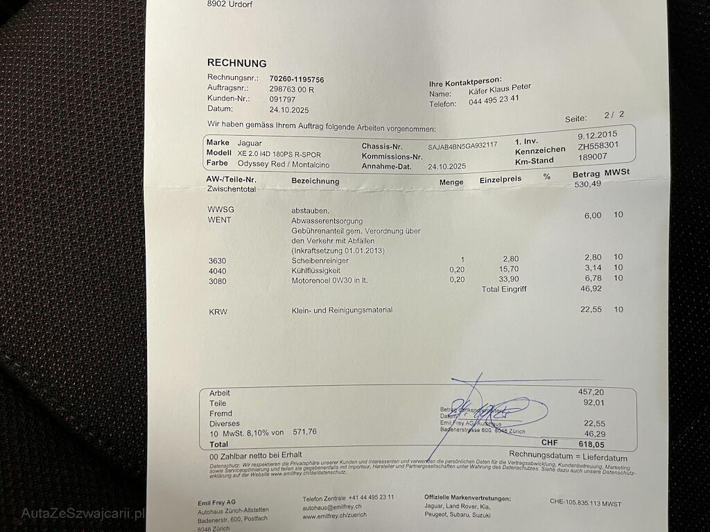 | Reparaturkosten | 0.00 CHF |