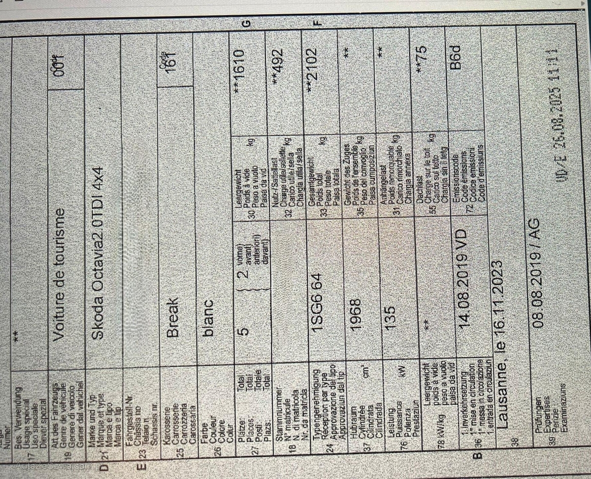 | Fahrzeugausweis | Vorhanden |