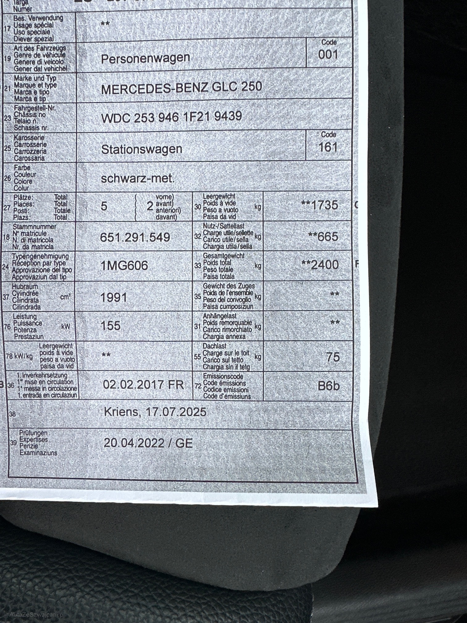 | Kommentar | Am Fahrzeug wurde kein Werkstatttest durchgeführt. Für sichtbare oder nicht sichtbare Mängel wird keine Haftung übernommen. Es werden nicht alle Funktionen des Fahrzeugs geprüft oder kontrolliert. Das gesamte Risiko liegt daher vollumfänglich beim Käufer. Auktions-/Verkaufsbedingungen: Nach Zuschlag an den Höchstbietenden sind keine Nachverhandlungen möglich, auch dann nicht, wenn nachträglich nicht deklarierte Mängel festgestellt werden. Der Verkauf erfolgt ab Platz, ohne Garantie, ohne Gewährleistung. Wandelung und Minderung sind ausgeschlossen. Abholung: Das Fahrzeug muss innert 4 Arbeitstagen nach Gebotsende abgeholt werden. Ab dem 5. Tag wird eine Standgebühr von CHF 30.– pro Tag verrechnet. |