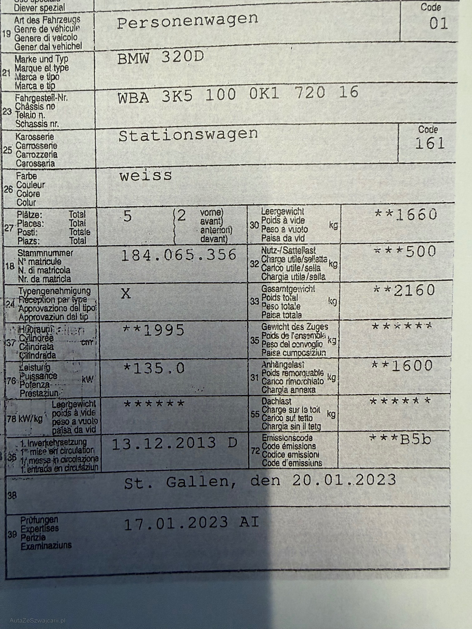 | Kommentar | Gepflegt und sauber, war bis heute im Betrieb, keine Prüfung durchgeführt Am Fahrzeug wurde kein Werkstatttest gemacht (für sichtbare oder nicht sichtbare Mängel wird nicht gehaftet). Wir haben nicht alle Funktionen vom Fahrzeug getestet und geprüft. Das Risiko liegt somit vollumfänglich beim Käufer. Nach erhalt des Zuschlags gibt es keine Nachverhandlung, auch wenn nicht deklarierte Mängel zum Vorschein kommen. Ab Platz ohne Garantie oder Gewährleistung, Wandelung und Minderung werden wegbedungen. |