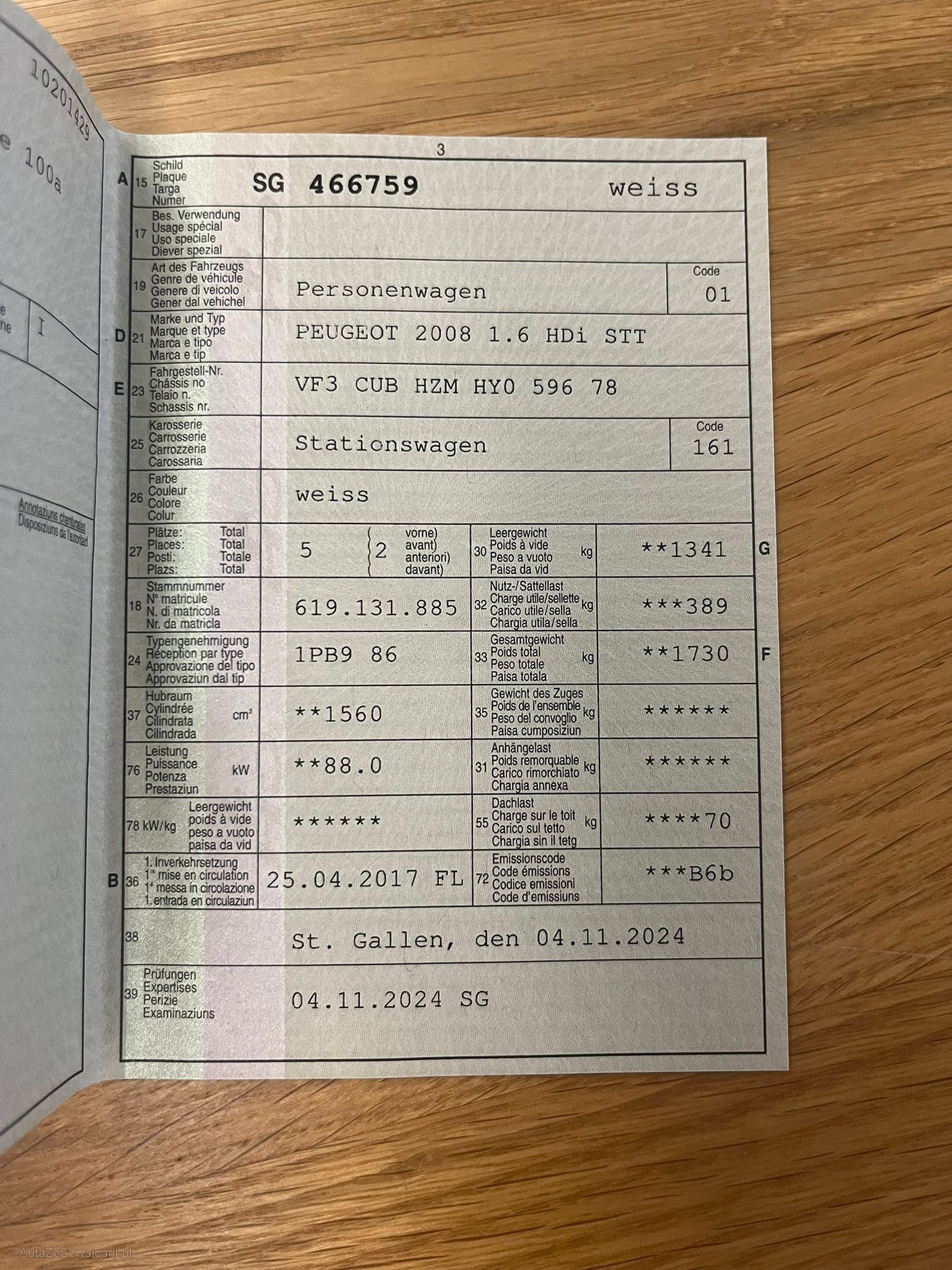 | Kommentar | Technisch nicht geprüft (Dieselpartikelfiltermessung durchgeführt = i.O siehe Bilder). Fahrzeug läuft und kann gefahren werden. Warnlampen leuchten keine 2 Schlüssel vorhanden sowie Serviceheft. Hat 4 Alu Räder Sommerreifen + 4 Winterreifen ( ohne Felgen ) FZ optisch sowie innen im guten Zustand Fahrzeug muss innert 7 Tage abgeholt werden (Banküberweisung) |