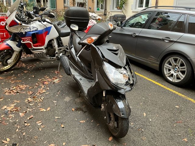 | Condition_and_Equipment | Zustand Fahrzeug muss transportiert werden (Höhe und Breite beachten). Schlüssel Nur ein Schlüssel vorhanden. --- Weitere Beschädigungen Kilometer-Anzeige defekt. Gem. Fahrzeughalter ca. 13'000km --- Sonstige Ausstattung und Zubehör TopCase |