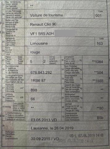 | Condition_and_Equipment | Zustand Fahrzeug ist fahrbar. Schlüssel Nur ein Schlüssel vorhanden. --- Innenraum Innenraum ungepflegt. Starke Verschmutzung im Innenraum. Sonstige Schäden Div.Carrosserie Teile sind leicht beschädigt. Weitere Beschädigungen Handkratzer auf der rechten Seite, an beiden Stoßfängern, der Heckklappe und der Motorhaube. --- Serienaustattung Airbag Fahrer und Beifahrerseite Elektrische Fensterheber vorne Aussenspiegel elektrisch verstellbar und heizbar Nebelscheinwerfer Lenkrad verstellbar ABS und EBV Elektr. Bremskraftverteilung Deaktivierung Beifahrerairbag Isofix-Kindersitzbefestigung Not-Bremsassistent mit Aktivierung der Warnblinkanlage Seitenairbags vorne ESP/ ASR/ CSV Tempomat mit Geschwindigkeitsbegrenzer Keyless-Drive Elektrische variable Servolenkung Höhenverstellbarer Fahrersitz HSA Berganfahrassistent Rücksitzlehne geteilt 1/3 oder 2/3 / umklappbar Klimaanlage manuell mit Pollenfilter Reifenreparatur-Kit Stop + Start System LED Tagfahrlicht Details siehe gültige Preisliste des Importeurs Keine Gewähr auf die Angaben der Serienausstattungen Renault Media-Nav Sonderausstattung Metallic-Lackierung Ausstattung Leichtmetall-Felgen Rückfahrsensoren Metallic-Lackierung |