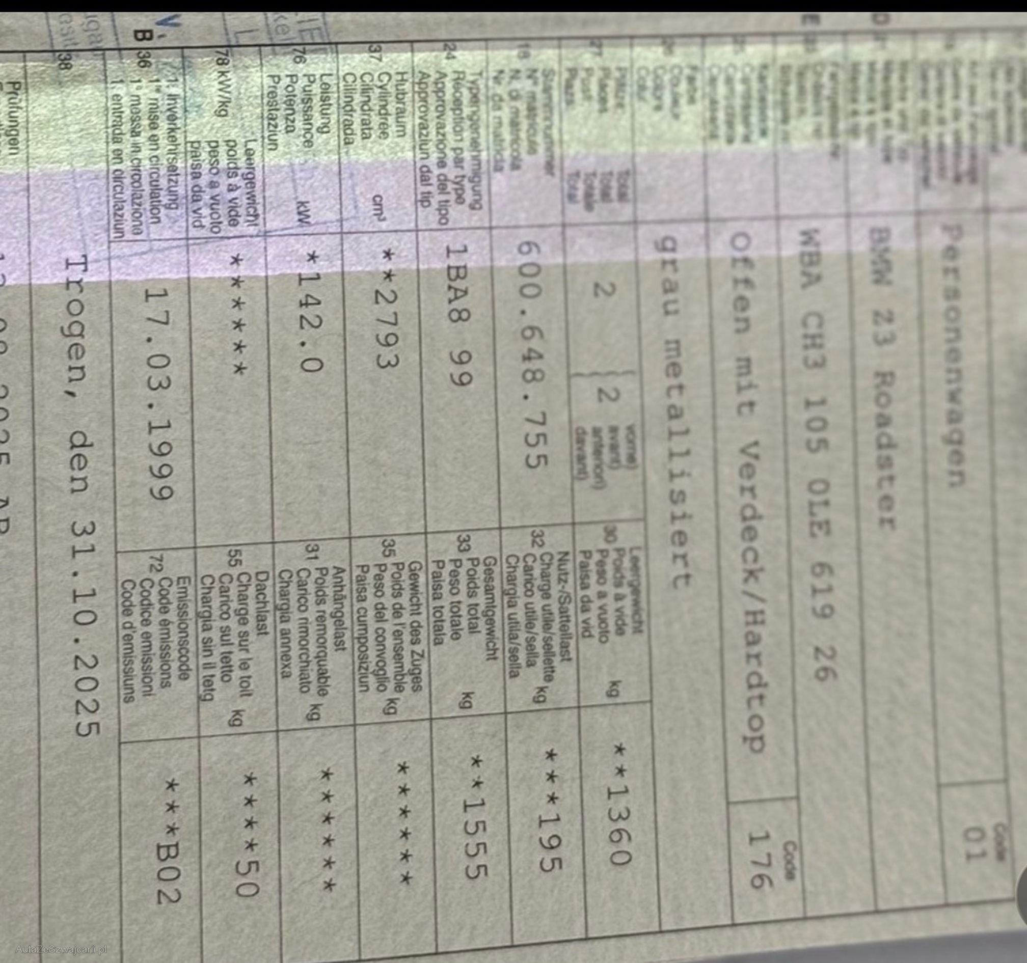 | 1. rejestracja | 17 marca 1999 |
