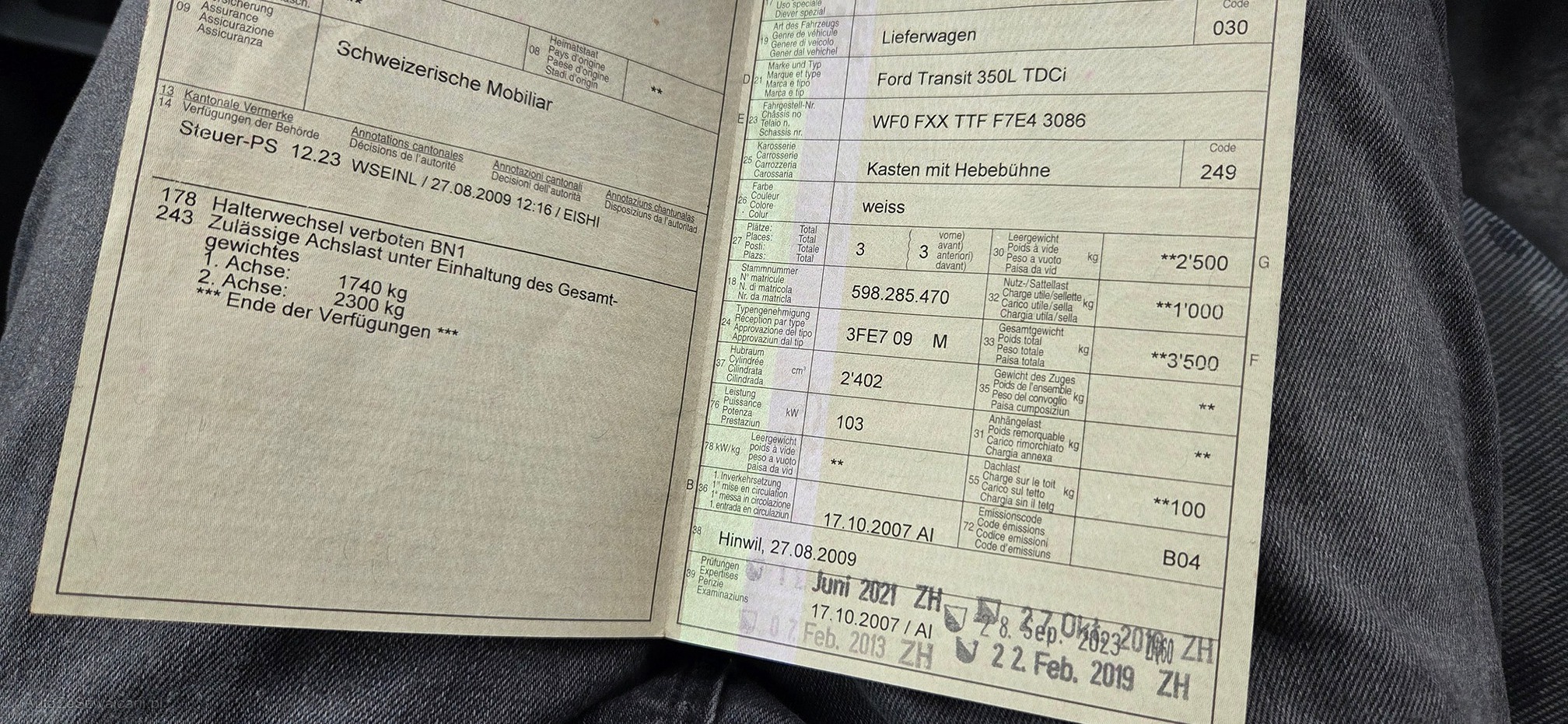 | Kommentar | - MFK im Januar fällig - Kardanwellenlager gerissen - Service im März 2026 fällig - Leichter Druckverlust am Hubzylinder rechts der Hebebühne, aber voll funktionstüchtig. |