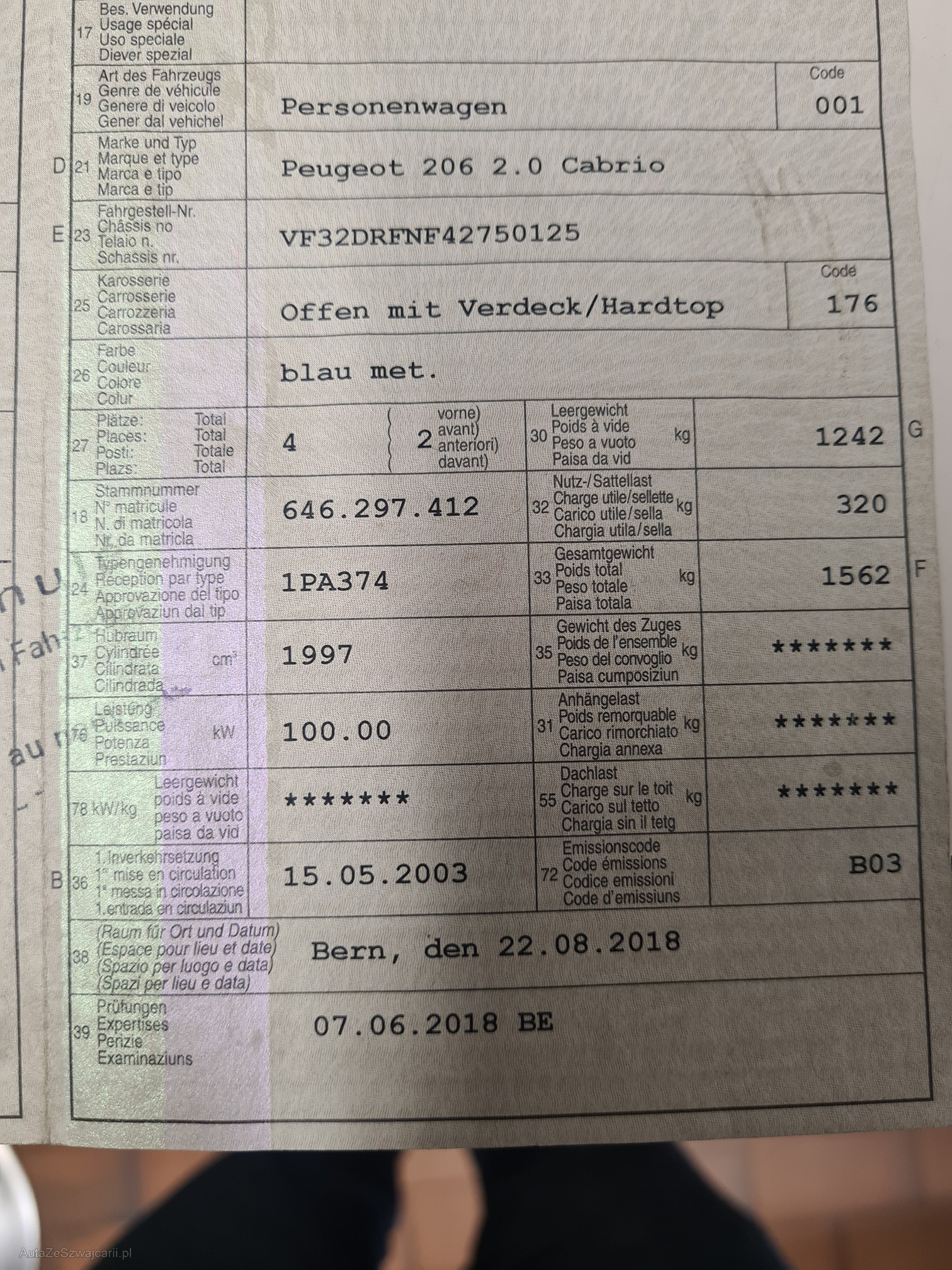 | Kommentar | Fensterhebermotor hinten links defekt! Fenster offen siehe Foto. Dach kann nicht geöffnet werden! (Fensterheber) Am Fahrzeug wurde keine vollumfängliche Prüfung der mechanischen Teile und der Carrosserie durchgeführt! Das Risiko liegt somit vollumfänglich beim Käufer. Um Missverständnisse zu vermeiden kann das Fahrzeug auf Voranmeldung besichtigt & getestet werden. Wird davon bewusst kein Gebrauch gemacht, liegt die Verantwortung beim Käufer. Nach Zuschlag, keine Nachverhandlungen möglich. Ab Platz ohne Garantie, Wandelung und Minderung werden wegbedungen. |