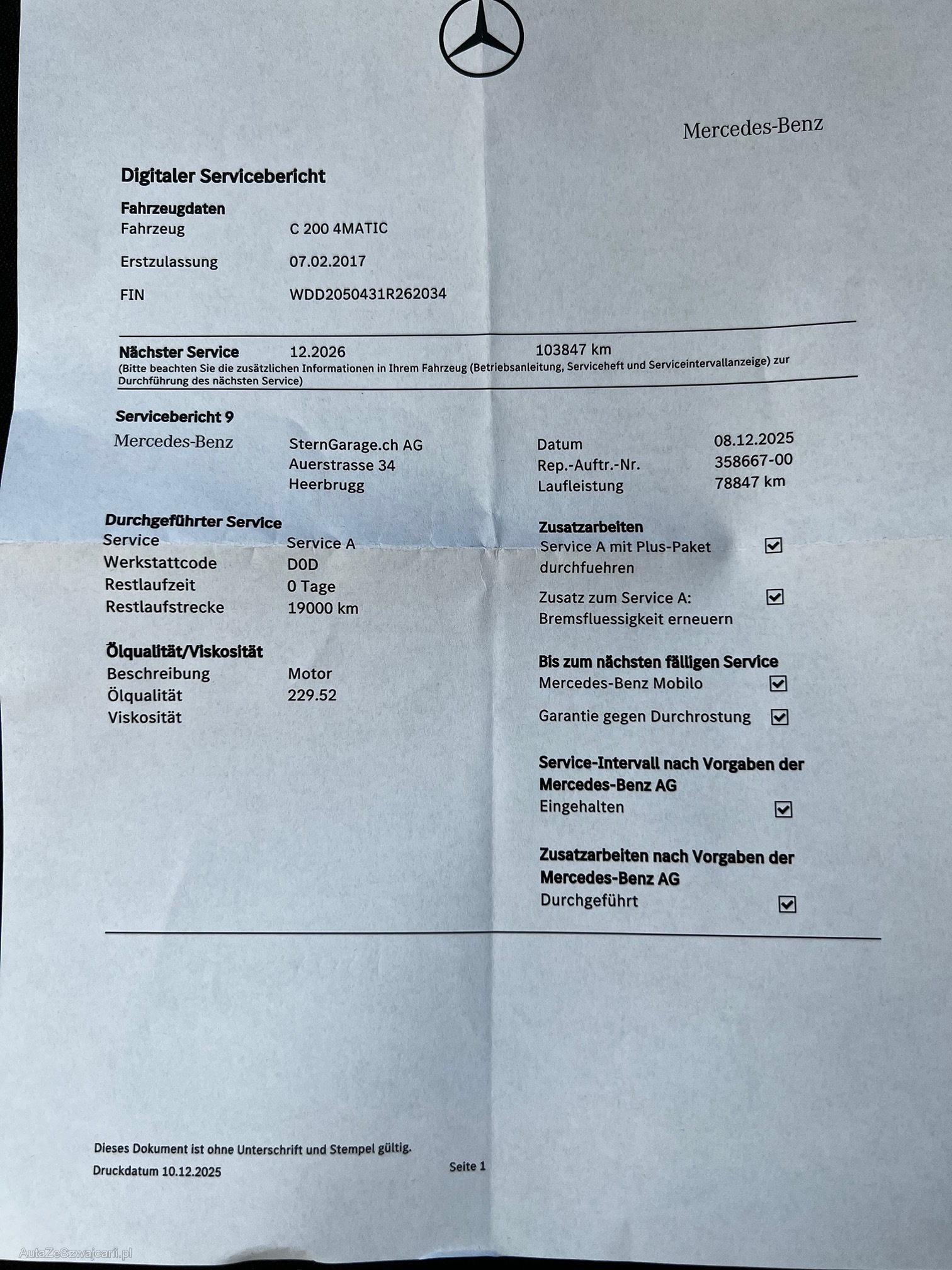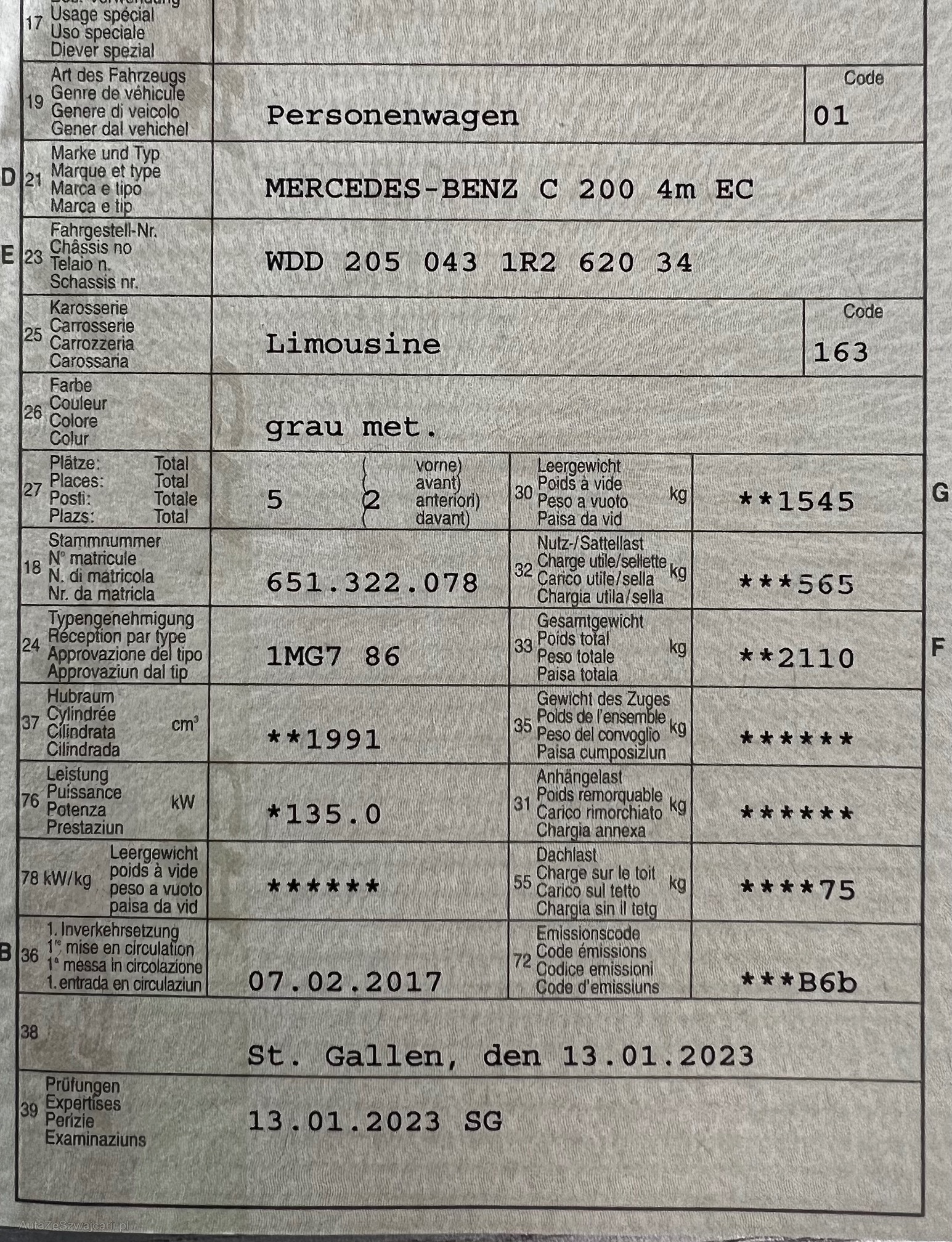 | VIN | WDD2050431R262034 |