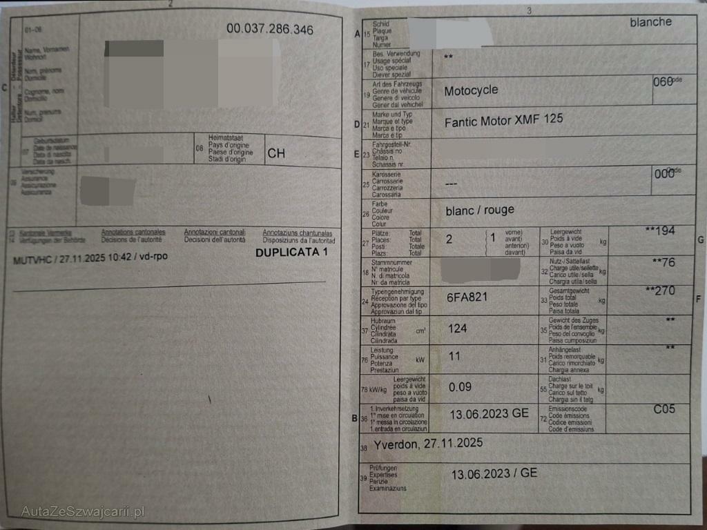 | Fahrzeugausweis | Vorhanden |