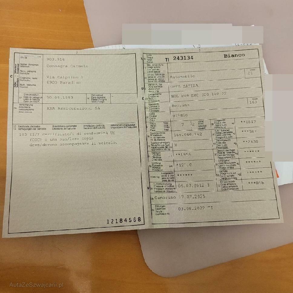 | Fahrzeugausweis | Vorhanden |