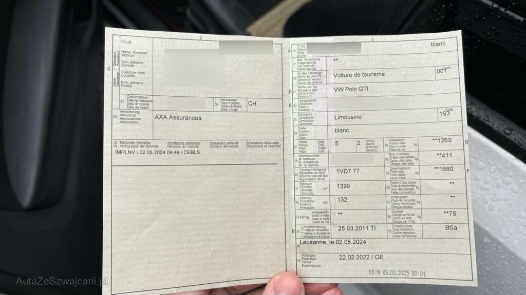 | Fahrzeugausweis | Vorhanden |