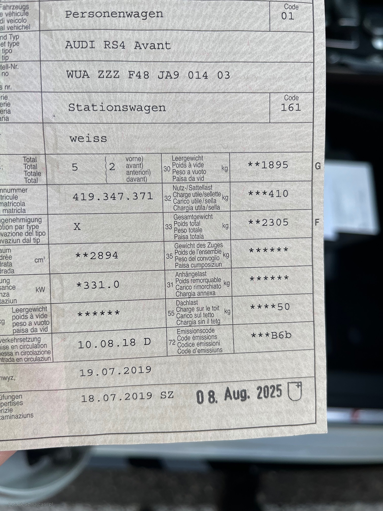 | VIN | WUAZZZF48JA901403 |