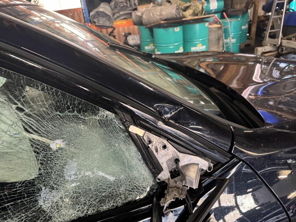 Dabei wurde die Stossstange vorne und deren Anbauteile, der Scheinwerfer links, beide Felgen, die Radhausverkleidung vorne und der Aussenspiegel rechts zerbrochen, der Kotflügel, die Motorhaube, der Pralldämpfer und der Längsträger gestaucht, alle Carrosserieteile eingedellt, der Dachrahmen rechts geknickt und eingedellt, die Radaufhängungen und Achsen verbogen, alle Airbags und der Gurtstraffer vorne links ausgelöst.