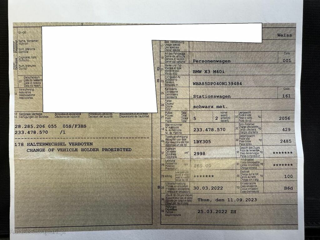 | Typ | X3 G01 M40i |