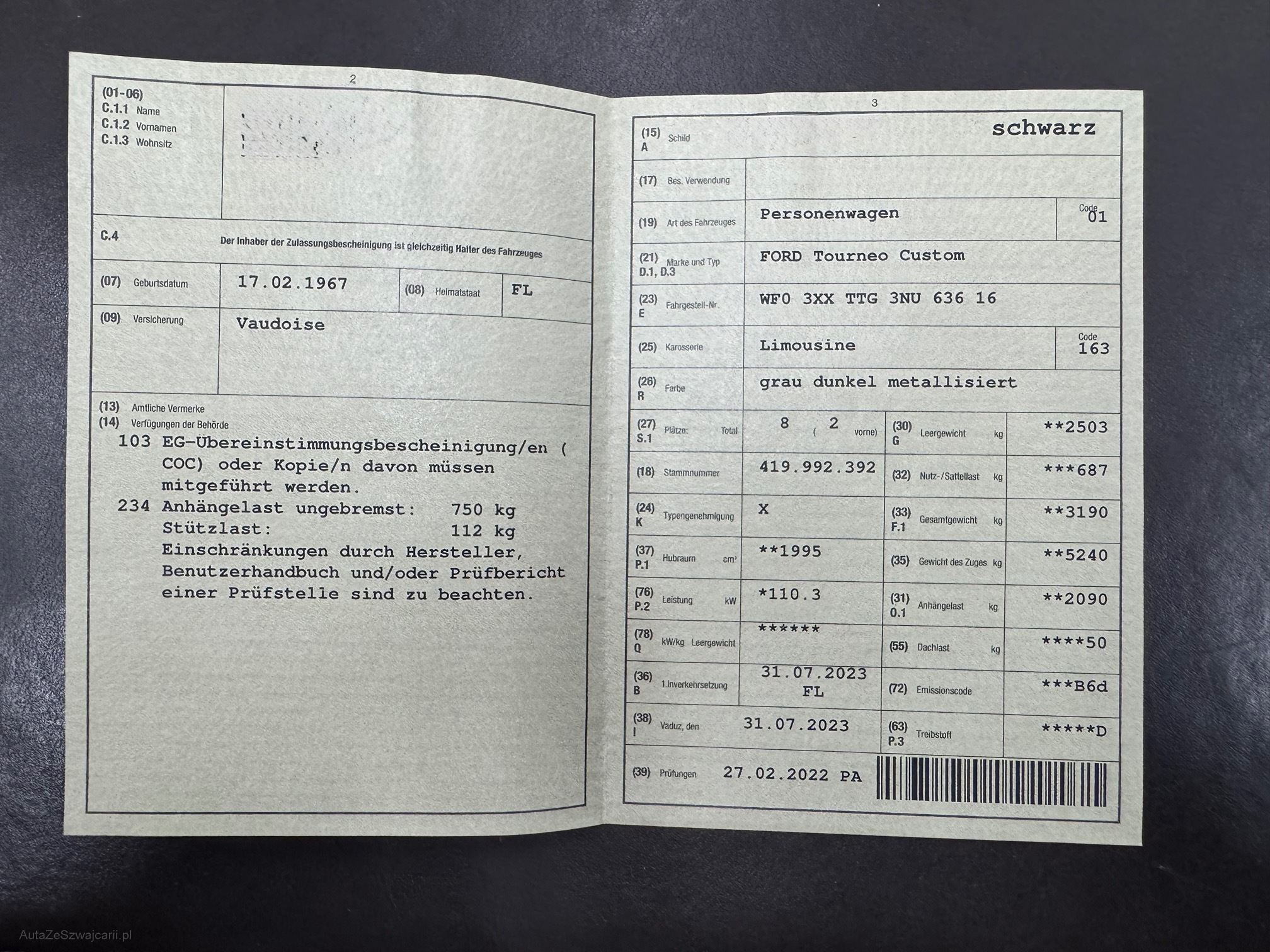 | Kommentar | 8 Sitze vorhanden 8 Räder. Alle Reifen top. Super Ausstattung und Zustand. Kratzer am Spiegel. |