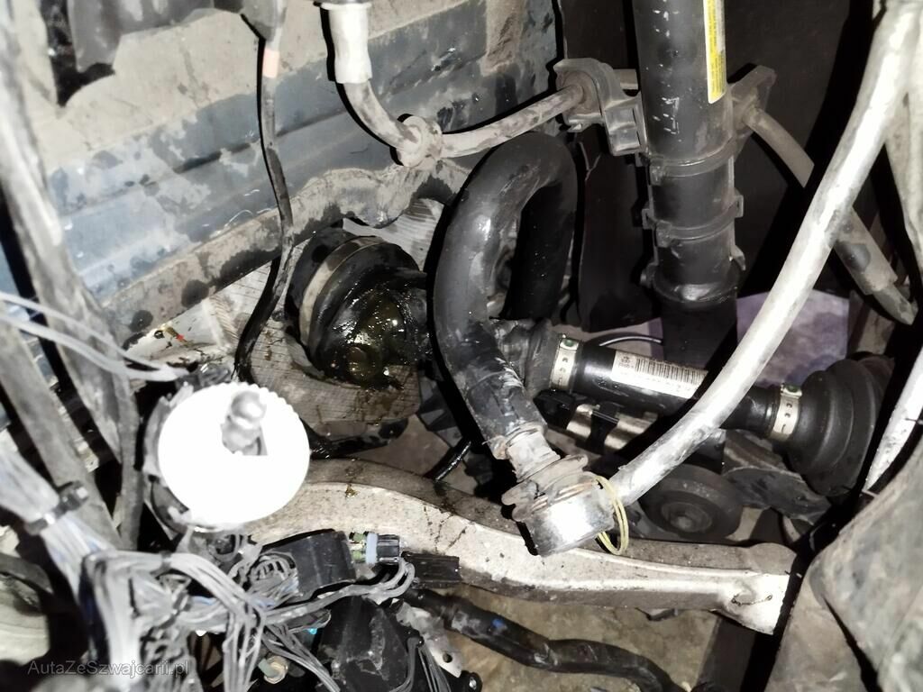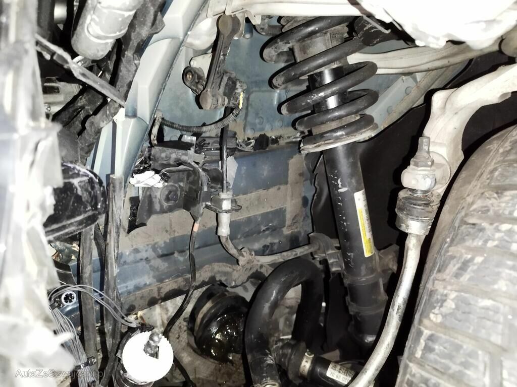 Die ganze Front links ist deformiert, die Aufhängung vorne links ist teils abgerissen, die Antriebswelle links ist abgerissen, der Fahrerairbag ist ausgelöst, der Knieairbag ist ausgelöst, der Kopfairbag links ist ausgelöst, der Gurtstraffer vorne links ist augelöst.