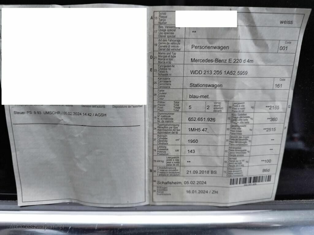 | Typ | E 220 d Swiss Star Avantgarde 4Matic 9G-Tronic |