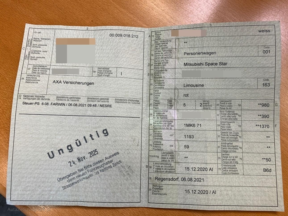 | Fahrzeugausweis | Vorhanden |