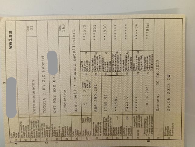 | Condition_and_Equipment | Zustand Fahrzeug ist rollbar. Sonstiges Fahrzeugdokumente vorhanden. --- Links Schweller links ist eingedrückt. Bodengruppe links ist eingedrückt. Rechts Bodengruppe rechts ist eingedrückt. Front Front eingedrückt. Front links eingedrückt. Front rechts eingedrückt. Motorhaube eingedrückt. Frontblech/Maskenblech eingedrückt. Längsträger vorne rechts und links gestaucht. Motor Klimakondensator ist eingedrückt. Achse Risiko Vorderachse. Risiko Lenkung. Elektrik Risiko Steuergeräte. Weitere Beschädigungen Frontteile beschädigt, Scheinwerfer Halter abgebrochen, Front deformiert, Vorderachsträger beschädigt, Bodenabdeckungen beschädigt. Beurteilung entsprechend den Fotos. --- Serienaustattung Airbag Fahrer und Beifahrerseite Sitzheizung vorne Fahrersitz elektrisch verstellbar Elektrische Fensterheber vorne + hinten Aussenspiegel elektrisch verstellbar und heizbar Navigationssystem Zentralverriegelung mit Fernbedienung Höhenverstellbarer Beifahrersitz Lederlenkrad Innenspiegel automatisch abblendbar Kopfairbag vorne und hinten Sprachbedienungssystem Scheibenwischer mit Regensensor Deaktivierung Beifahrerairbag Ambientebeleuchtung Bodenteppiche Stabilitätskontrolle VSC + Traktionskontrolle TRC Sportsitze Alcantara/ Leder Leichtmetallfelgen 19" Rückfahrkamera Multimedia-System Seitenairbags vorne Dachhimmel schwarz Follow-me-home Lichtfunktion Knieairbag Fahrer Dunkelgetönte Scheiben seitlich und hinten Isofix-Kindersitzbefestigung hinten Metallic-Lackierung zweifarbig ABS und EBD Elektr. Bremskraftverteilung Höhenverstellbarer Fahrersitz HSA Berganfahrassistent Reifendruck-Überwachungsanzeige Geschwindigkeitsbegrenzer Spurverlassenswarnung Bremsassistent BA Reifen-Reparatur Set Lenkradheizung LED-Scheinwerfer LED Tagfahrlicht Multi-Informationsdisplay Aussenspiegel elektrisch einklappbar Stossstangen-Abdeckung schwarz Smart-Key Totwinkel-Assistent Einparkhilfe vorne und hinten mit Parkassistent Lackierung Sonderfarben zweifarbig Keine Gewähr auf die Angaben der Serienausstattungen Klimaanlage automatisch 2-Zonen Fussgänger-Soundmodul LED-Nebelscheinwerfer Digitaler Radioempfang DAB+ Verkehrsschild-Erkennungssystem Connect Apple Car Play/ Android Auto Smartphone Integration Pack Safety Sense Rückfahr-Querverkehrswarner Spurverfolgungsassistent Garantie 10 Jahre/ 185'000 km Sonderausstattung Metallic-Lackierung Pack Multimedia Ausstattung Klimaanlage Leichtmetall-Felgen Rückfahrsensoren Metallic-Lackierung |