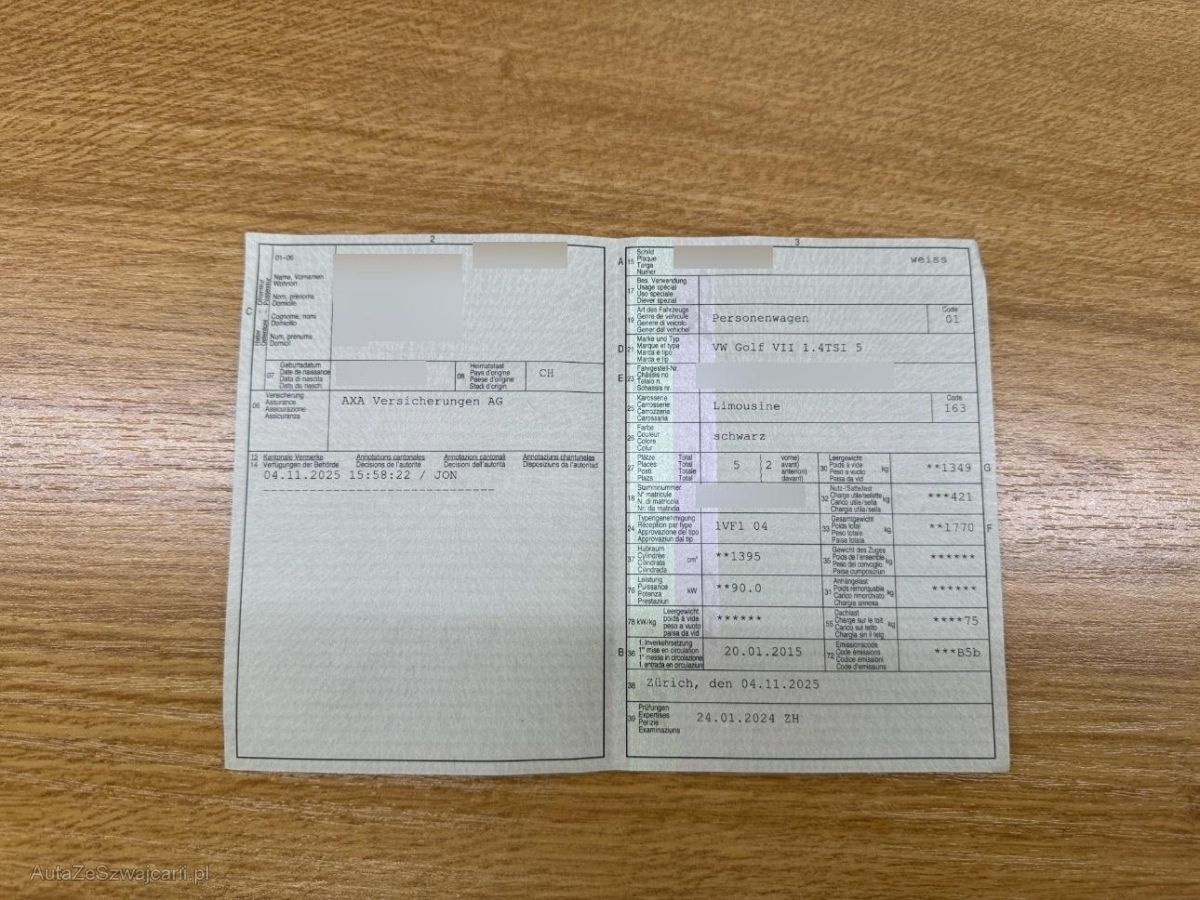 | Fahrzeugausweis | Vorhanden |