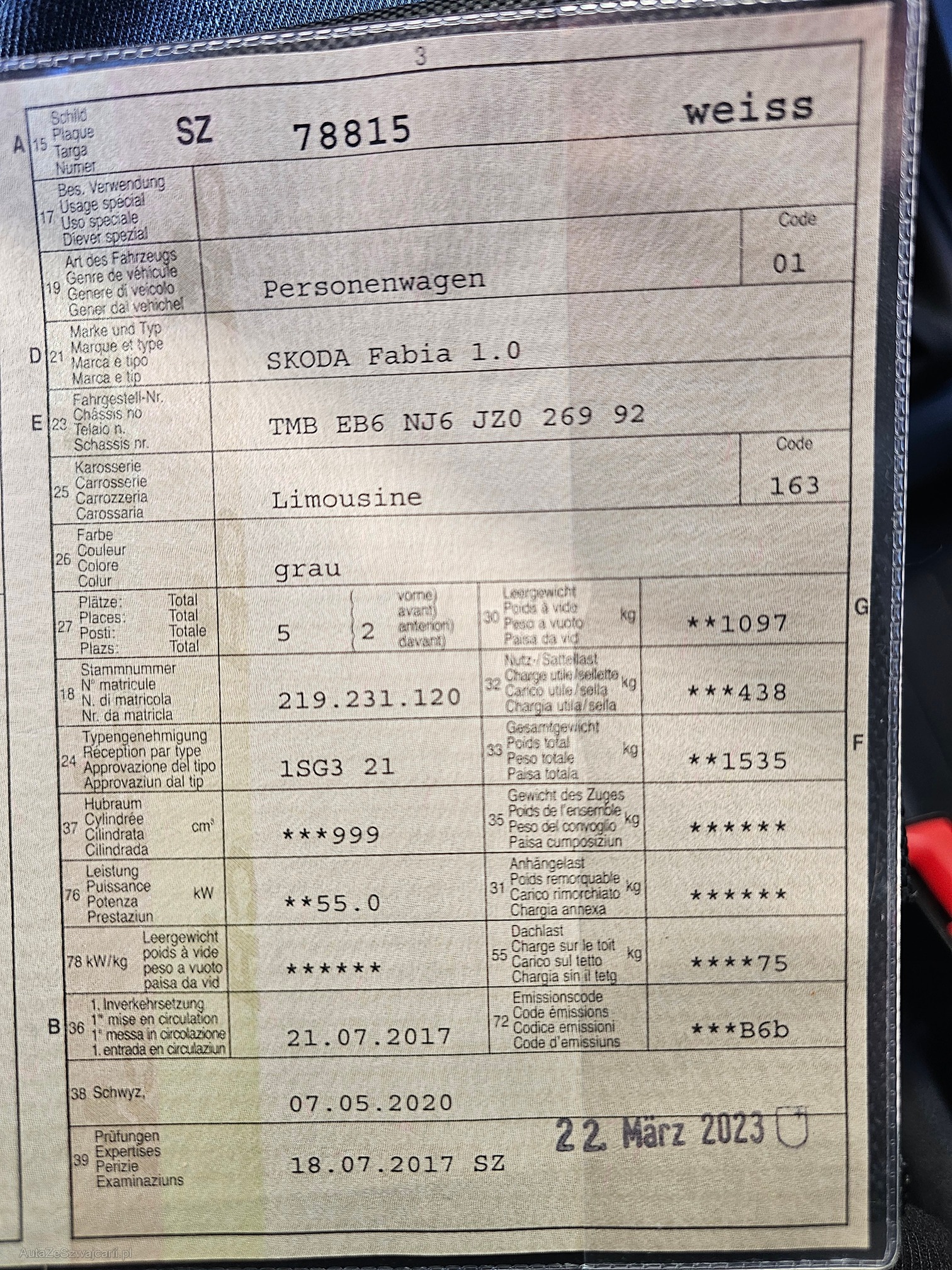 | Kommentar | - Kein Werkstatttest gemacht - Alle Servicearbeiten bei Skoda-Garage ausgeführt - Innen und aussen gepflegt |