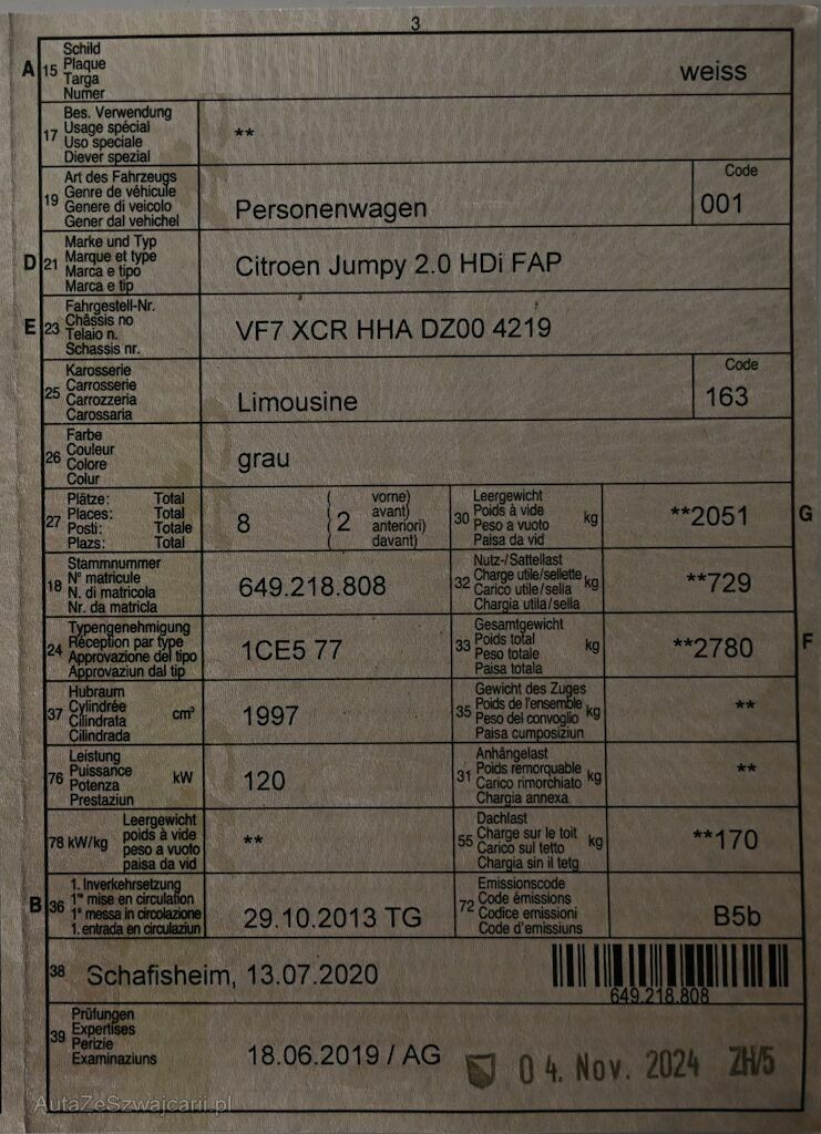 | Information | Fahrzeug wird nur gegen Barzahlung verkauft und muss durch den Käufer selbst oder dessen Personal abgeholt werden. Abholung muss innert 3-Tagen nach Kauf und nach vorgängiger telefonischer Anmeldung erfolgen. Schadenbeschrieb siehe Formular EF-Trade sowie Fotos. |