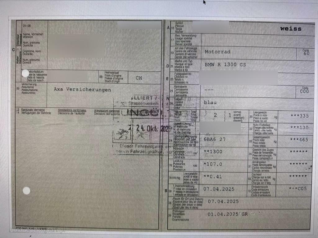 | Fahrzeugausweis | Vorhanden |