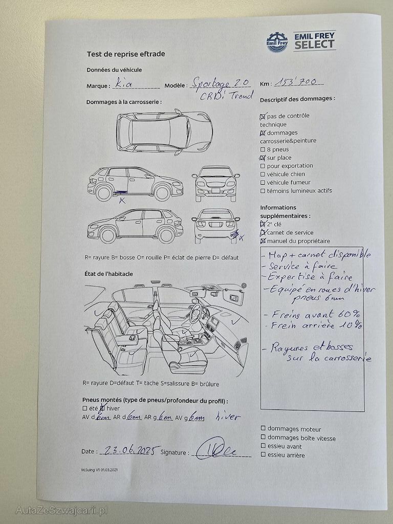 | Information | 2 clés Map + carnet de service disponible Service à faire Expertise à faire Equipé en roues d'été pneus 6 mm Freins avant 60 % Freins arrière 10 % Rayures et bosses sur la carrosserie |