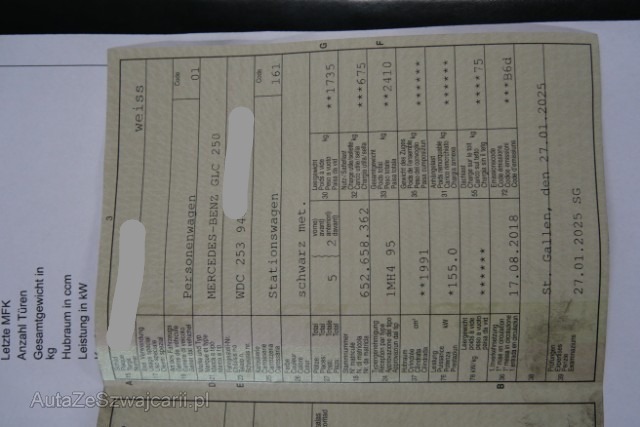 | Condition_and_Equipment | Zustand Fahrzeug ist NICHT fahrbar. Fahrzeug ist rollbar. Bereifung Fahrzeug wird mit Winterräder abgegeben. Weitere wichtige Hinweise Massekabel und Kabelbaum vorne links beschädigt- MOTOR STARTET NICHT AIRBAGS UND GURTSTRAFFER GEZÜNDET --- Links Linke Seite beschädigt. Front Fussgängerschutz ausgelöst. Front eingedrückt. Front links eingedrückt. Frontblech/Maskenblech eingedrückt. Radhaus vorne links eingedrückt / gestaucht. Längsträger vorne links gestaucht. Fahrzeugvorbau verschoben. Motor Alle Kühler vorne sind eingedrückt. Elektrik Risiko Scheinwerfer. Weitere Beschädigungen Massekabel und Kabelbaum vorne links beschädigt- MOTOR STARTET NICHT --- Serienaustattung Airbag Fahrer und Beifahrerseite Aussenspiegel elektrisch verstellbar und heizbar ABS Antiblockiersystem Sportfahrwerk Dachreling Seitenairbag Fahrer und Beifahrerseite ESP Elektronisches Stabilitätsprogramm Windowbag Reifendruck-Kontrollsystem RDK Zentralverriegelung mit Innenschalter Isofix-Vorbereitung Rücksitze aussen Klimaautomat Thermatic Pack Innenraum-Licht Dachhimmel schwarz Knieairbag Fahrer Tempomat inklusiv Speedtronic Rücksitze geteilt umklappbar 40/20/40 Start + Stopp Funktion Agility Control Treibstofftank 66 Liter Bluetooth Freisprecheinrichtung Keine Gewähr auf die Angaben der Serienausstattungen Multifunktionslenkrad Leder Remote Online Audio 20 Leichtmetallräder 19" 5-Doppelspeichen Design AMG Line Exterieur Aktiver Brems-Assistent Sonderausstattung Sitzheizung vorne Metallic-Lackierung Laderaumabdeckung Edelholzausführung Esche Rückfahrkamera Radio/ CD Audio 20 Wärmedämmendes Glas dunkel getönt Trittbretter Heckklappe elektrisch DAB Radio (Digital Audio Sendung) Aktiver Parkassistent mit Parktronic Pack Spiegel Vorbereitung Navigationsmodul Map Pilot Navigationsmodul Map Pilot Pack Night Verbundsicherheitsglas mit Akustikfolie LED-Scheinwerfer High Performance Keyless-Go Start Funktion AMG Line Interieur |