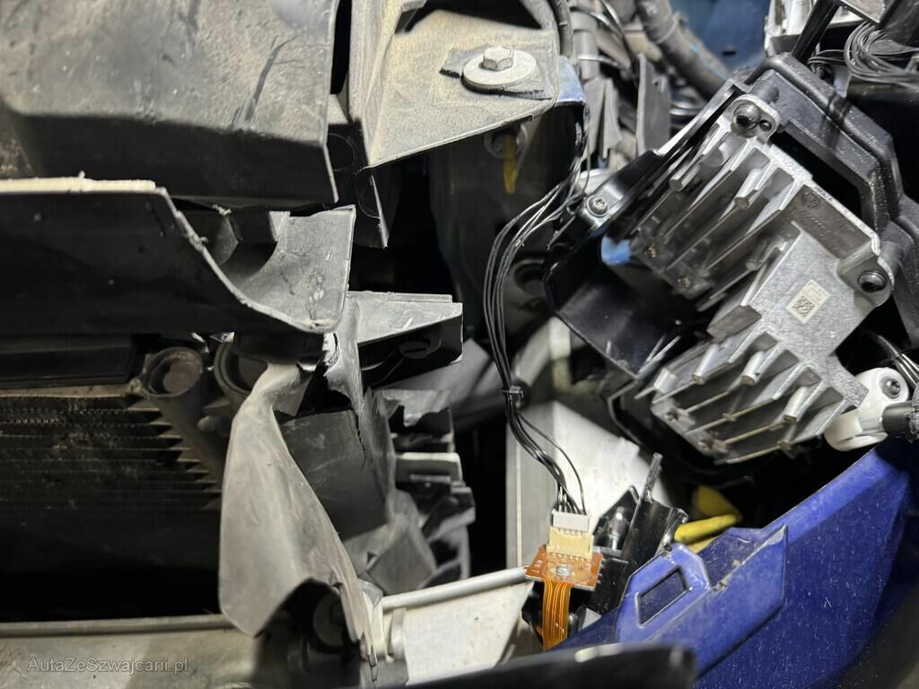 Pare-chocs, renforts pare-chocs, supports pare-chocs, calandres, phares, capot moteur, charnières capot moteur, aile avant gauche, support d'aile avant gauche, façade avant, radiateur et condenseur endommagés