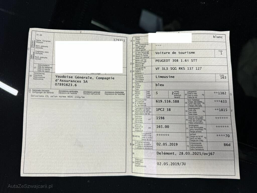 | Typ | 308 1.6 THP GT EAT |