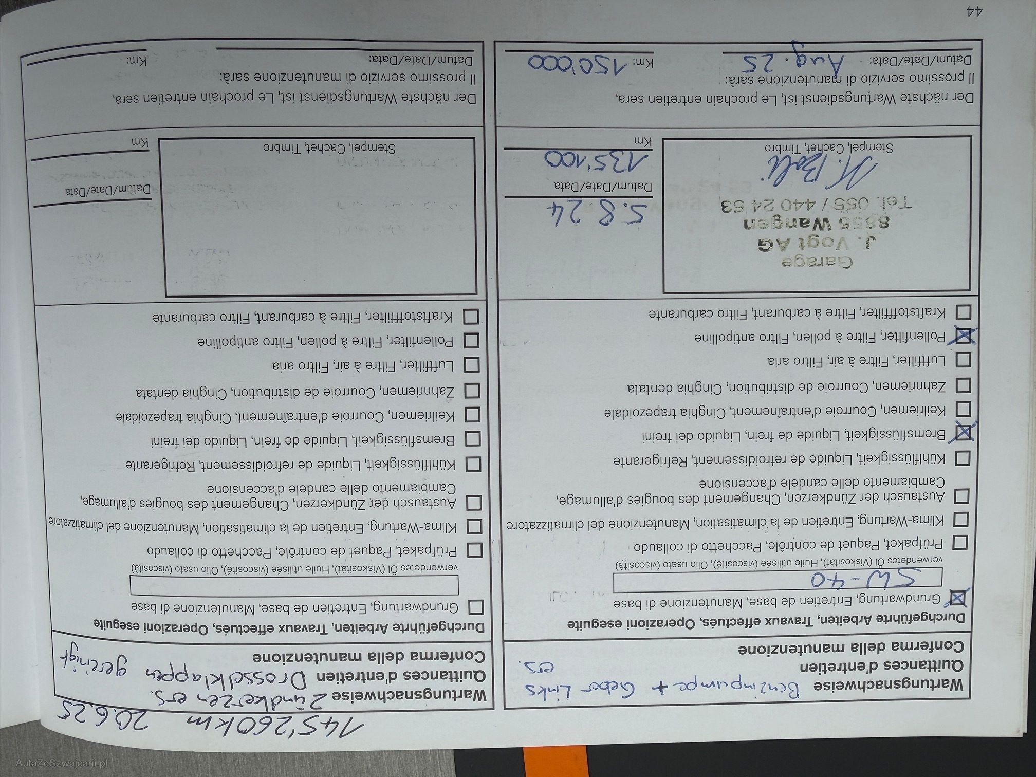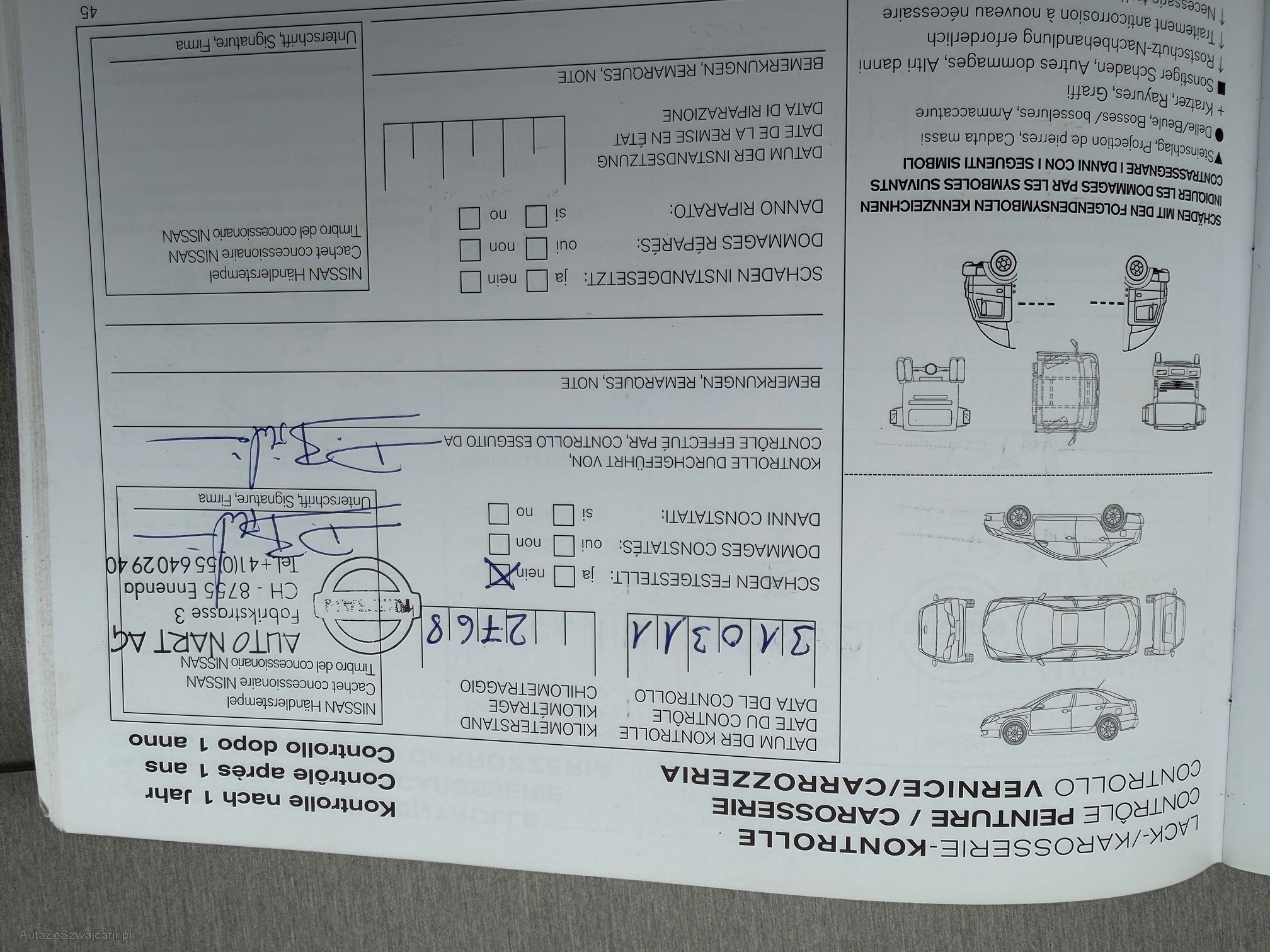 | Kommentar | Fahrzeug fährt normal ohne Probleme. Kein Werkstatttest durchgeführt. |