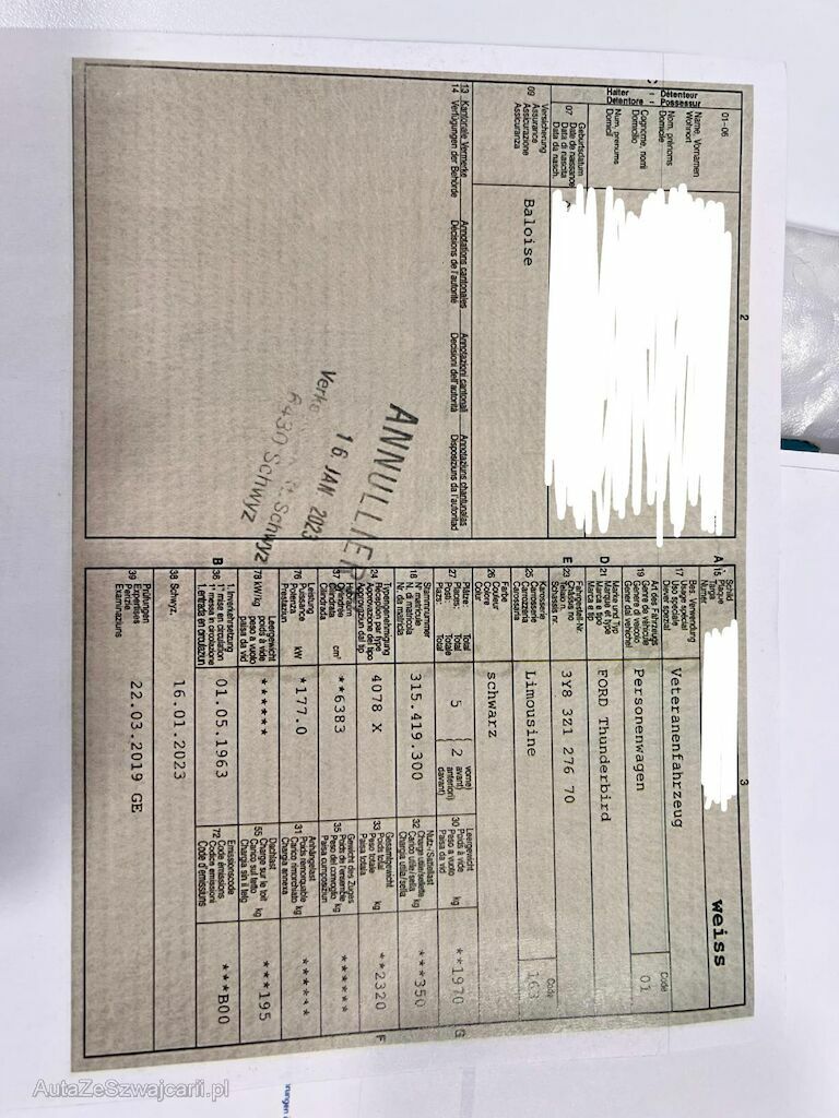 | Information | Keine technische Prüfung (Werkstatttest) vorgenommen Diverse Schäden an Karosserie/Lack. Fahrzeug ab Platz, ohne Garantie und Aufbereitung. DPF/FAP Filter nicht kontrolliert Keine Gewähr auf die Angaben der Sonder- und Serienausstattung / keine mechanische Prüfung. Fahrzeug wurde unzerlegt expertisiert / keine Haftung für allfällige, nach Demontage bekanntwerdenden Mängel. Fahrzeugbereifung und Ausstattung gemäss Fotos / Fahrzeugkauf auf eigenes Risiko ab Platz ohne Nachwährschaft. - Div. Kratzer Arbeiten zu erledigen: • VR: Querlenkerbuchsen- und Kugelgelenke oben und unten ersetzen. • VR:Stabilisatorkoppelstange ersetzen. • Spezialwerkzeug (Federspanner) ist vor Ort. • Öllache; Servolenkungsschlauch ersetzen. • Lenkgeometrie ausführen. • Motor & Chassis reinigen. • Vergaser einstellen. • Bei Bedarf Armaturenbrett ersetzen. Alle Teile befinden sich im Kofferraum. Erledigte Arbeiten: • VL: Querlenkerbuchsen- und Kugelgelenke oben und unten ersetzt. • VL:Stabilisatorkoppelstange ersetzt. • VDD ersetzt. • Zündkerzen ersetzt. • Anlasser ersetzt. • Motorölwannendichtung ersetzt. • Simmerring Ausgang Automat ersetzt. • Automatenölwanne ersetzt und System neu befüllt. Füllstand sollte stimmen. Kann nur bei laufendem Motor gemacht werden. |