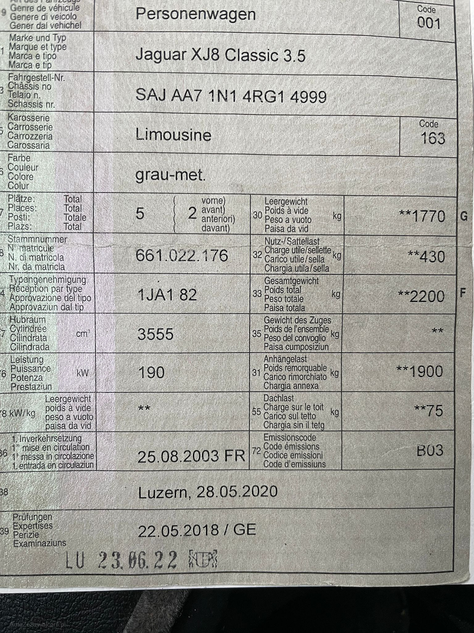 | Kommentar | Fahrzeug von Sammler, hatte etwas Standzeit => Wir haben einen MFK Check durchgeführt - Stossdämpfer und Bremsprüfstand i.o. (alles gut in der Toleranz) - Luftkompressor haben wir kürzlich ersetzt - Für die MFK sollten diverse Staubschutzmanschetten von Stabilisatorgelenken / Traggelenken an der Hinterachse ersetzt werden, da gerissen / rissig => Staubmanschetten universal erhältlich bsp. bei Hostettler - Bekannte mängel: Radio geht nicht an / Abdeckung links bei einstieg fehlt (siehe bild) / Sehr kleiner lackschaden hinten links 99% lässt sich rauspolieren / Dachhimmel teilweise etwas lose, aber hängt nicht durch - Ansonsten Motor / Getriebe etc. einwandfrei, gute Grundsubstanz fährt sich sehr schön |