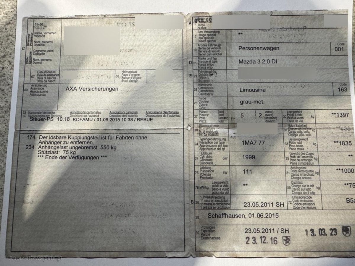 | Fahrzeugausweis | Vorhanden |