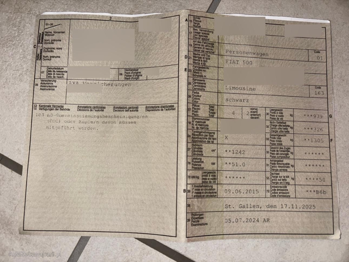 | Fahrzeugausweis | Vorhanden |