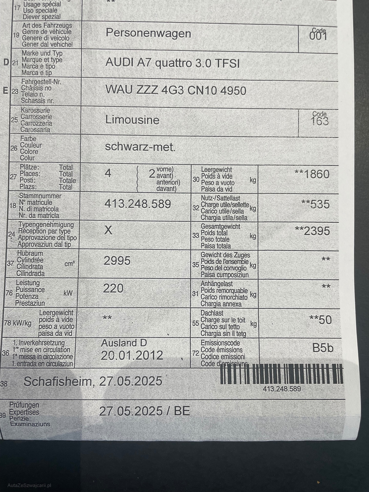| VIN | WAUZZZ4G3CN104950 |