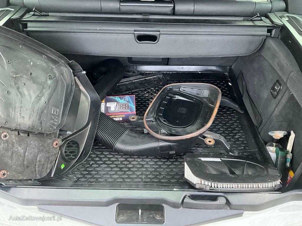 | Serienausstattung | Nebelscheinwerfer, Grün getönte Scheiben, Wartungsintervall-Anzeige, Elektronische Parkbremse, Zentralverriegelung mit Fernbedienung, Aux-In Anschluss, Partikelfilter und Oxydationskatalysator, Heckscheiben-Wisch-/Waschanlage, Innen- und Aussenspiegel automatisch abblendend, Tagfahrlicht, Dekor: Interieurleisten in Satinsilber matt, Info-Display, 3 Speichen-Lederlenkrad, Airbag: Airbag Fahrer und Beifahrer, 2 Steckdosen in der Mittelkonsole (vorne und hinten), Sicherheitstrennnetz oder /-gitter im Gepäckraum, Start-/Stop-Knopf, Befestigungsösen im Laderaum, Bremsbelag-Verschleissanzeige, Laderaumabdeckung, Hill Descent Control (HDC), Licht: Nebelschlussleuchte, Mittelarmlehne vorne, Leichtmetallfelgen im Sternspeiche 209 18J mit Pneu, Frontscheibe Verbundglas, Vordersitze mit elektrischer Höhen-, Lehnen-, und Neigungseinstellung, Lichtwarnsummer, Reifen mit Notlaufeigenschaft, Antiblockiersystem (ABS), Stoff-Ausstattung, Scheibenwischer vorne mit Intervall, Stossstangen und Aussenspiegel in Wagenfarbe, Lenkrad: Multifunktionslenkrad, Getriebe: 8-Stufen-Automat Steptronic, Armlehne vorne mit Ablagefach, Wegfahrsperre elektronisch, Window-Kopfairbags, Bordcomputer, Vordersitze mechanisch längsverstellbar, Airbag: Seitenairbag für Fahrer und Beifahrer, Aussentemperaturanzeige, Regensensor für Scheibenwischer vorne, Dynamische Stabilitätskontrolle (DSC), Stereolautsprechersystem mit 6 LS, Steckdose im Kofferraum, Aufklappbare Heckscheibe, Gepäckraumboden abschliessbar, Bremsassistent (BAS), Assist: Crash-Sensor, 3 Kopfstützen hinten, Park Distance Control vorne und hinten, Nichtraucherausführung, Elektrische Fensterheber vorne + hinten, Servotronic, Gurtstraffer vorne, Sitzbelegungserkennung für Beifahrersitz, Radio BMW Professional, Assist: Tempomat mit Bremsfunktion, Anbauteile in Wagenfarbe, Assist: Cornering Brake Control (CBC), Allradantrieb permanent, ISOFIX Kindersitzvorrichtung, Aktive Kopfstützen, Reifendruckverlust-Warnsystem, Drittes Bremslicht, Automatische Stabilitäts-Control (ASC), Airbag: Airbag Beifahrer deaktivierbar, Höhenverstellbare Gurten vorne, Rücksitzlehne geteilt abklappbar, Geteilte Heckklappe, Tageskilometerzähler, Lenkrad: Lenkrad längs- und höhenverstellbar, Dynamische Bremsleuchten, Lackierung: Uni-Lackierung, Mittelarmlehne hinten, Abschliessbare Radschrauben, Bremsenergie-Rückgewinnung, Aussenspiegel rechts und links beheizbar und elektrisch verstellbar, Assist: Anfahrassistent, Klimatisierungsautomatik, Cupholder vorne und hinten, Veloursfussmatten vorne und hinten, Verbandskasten |