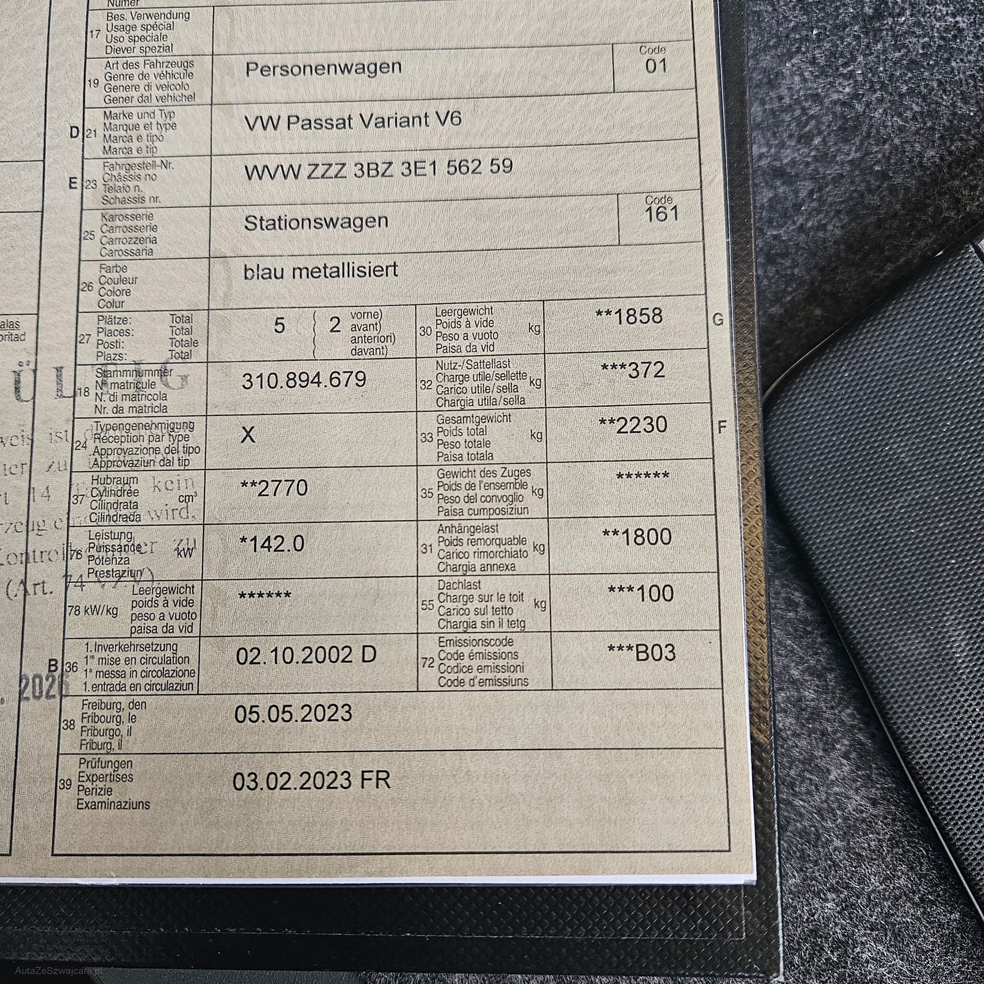 | VIN | WVWZZZ3BZ3E156259 |