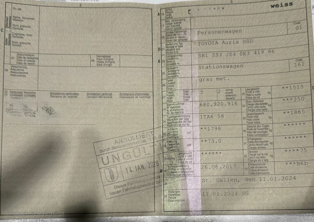 | Typ | AURIS TOURING SPORTS 1.8 HYBRID |