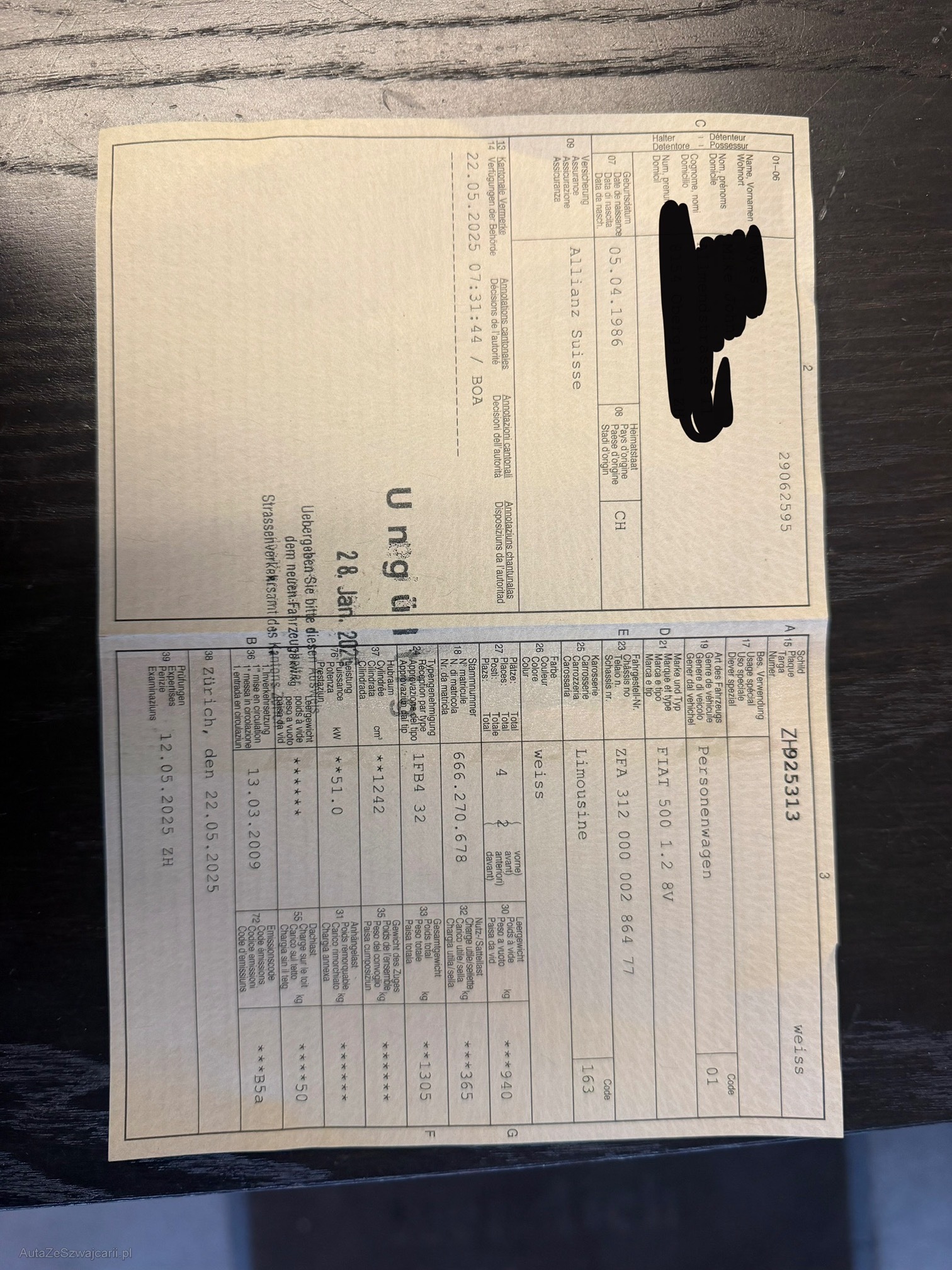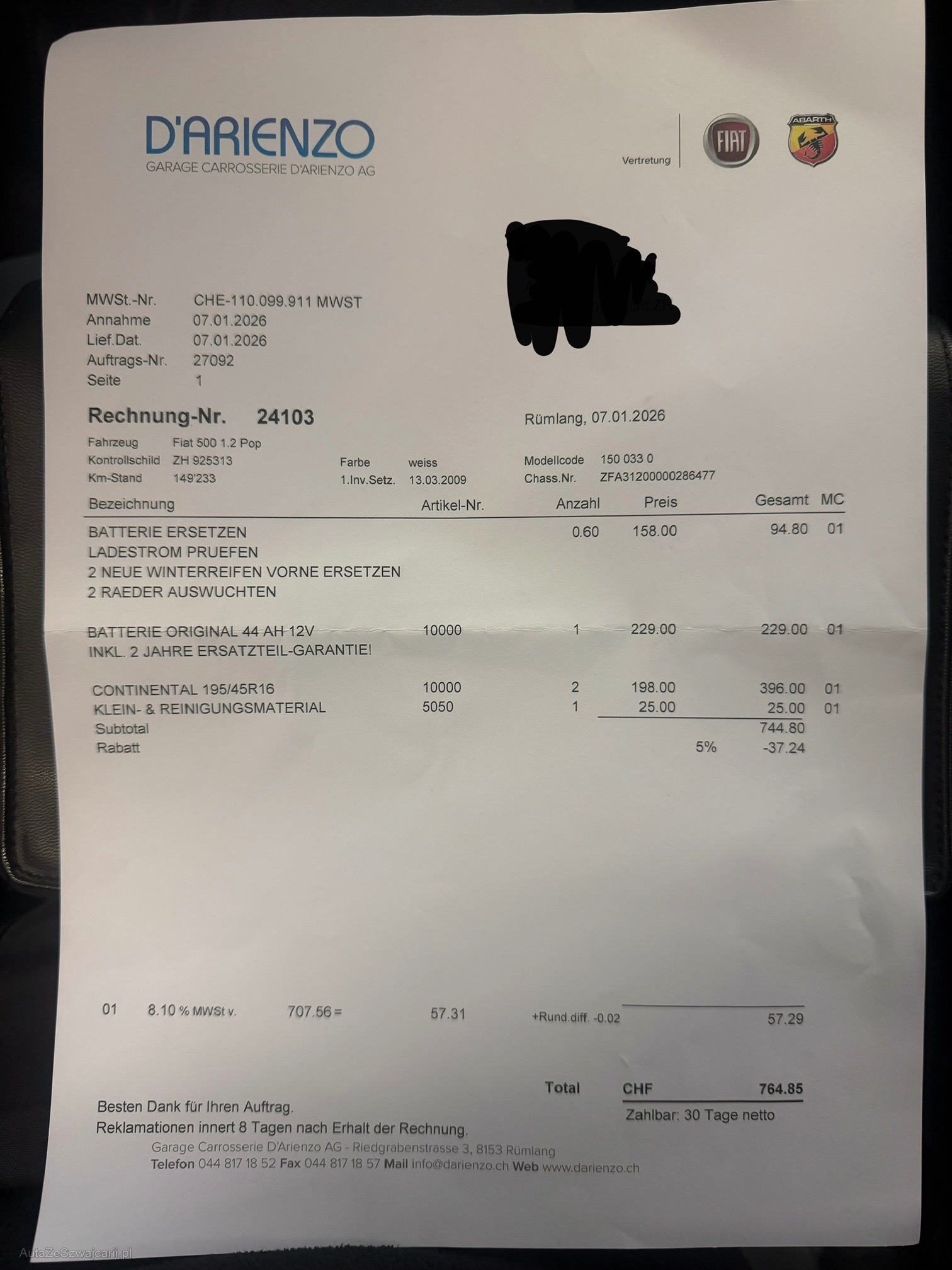 | Kommentar | Fiat 500 1.2 mit 150’315 km. Letzte MFK: 05.2025. Das Fahrzeug befindet sich in gutem Zustand, mit altersbedingten Gebrauchsspuren und leichten Kratzern. Am Fahrzeug wurde kein Werkstatttest durchgeführt. Für sichtbare oder nicht sichtbare Mängel wird keine Haftung übernommen, da nicht alle Funktionen geprüft oder getestet wurden. Das Risiko liegt vollumfänglich beim Käufer. Nach Erhalt des Zuschlags sind keine Nachverhandlungen möglich, auch wenn nicht deklarierte Mängel festgestellt werden. Ab Platz, ohne Garantie oder Gewährleistung. Wandelung und Minderung sind ausgeschlossen. |