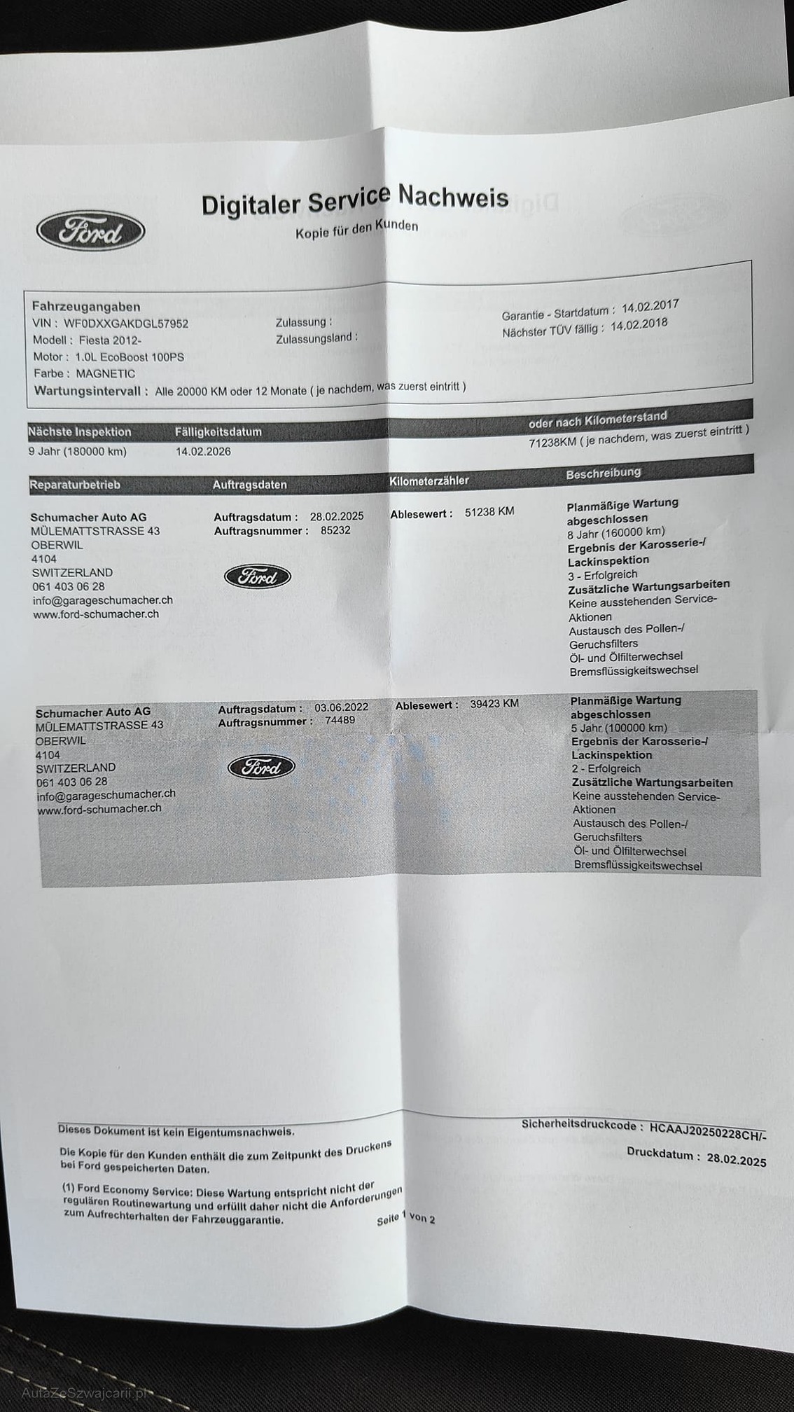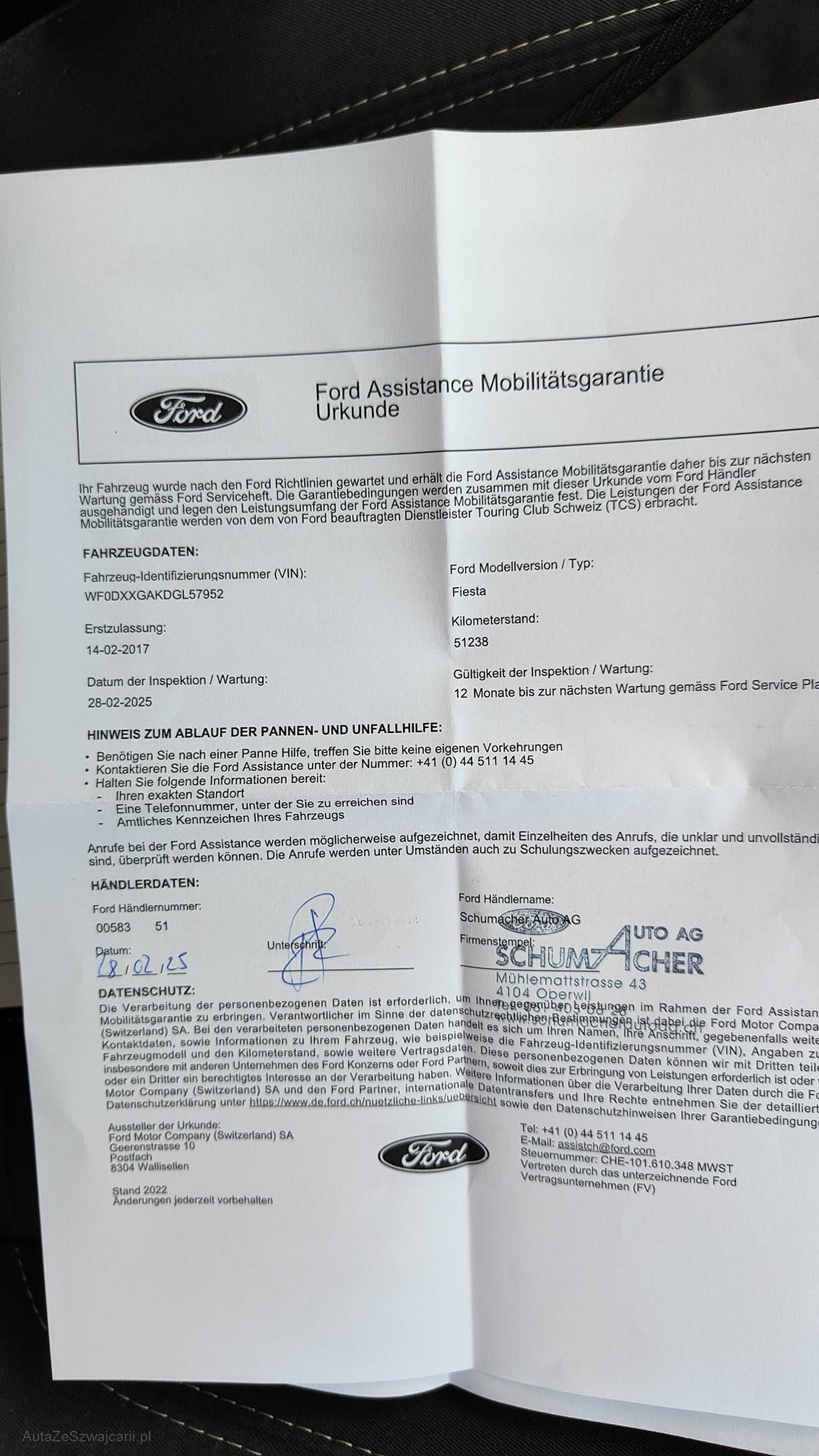| Kommentar | - Geräusch aus dem Armaturenbrett evtl. eine Luftklappe welche klemmt - Div. Dellen und Kratzer siehe Fotos - Fahrzeugbereifung, Fahrzeugzustand und Ausstattung gemäss Bildern. Unsere Fahrzeuge wurden keiner Prüfung unterzogen, Fahrzeugkauf auf eigenes Risiko ab Platz ohne Nachwährschaft. Das Gewährleisten für Sachmängel wird weggegangen. |