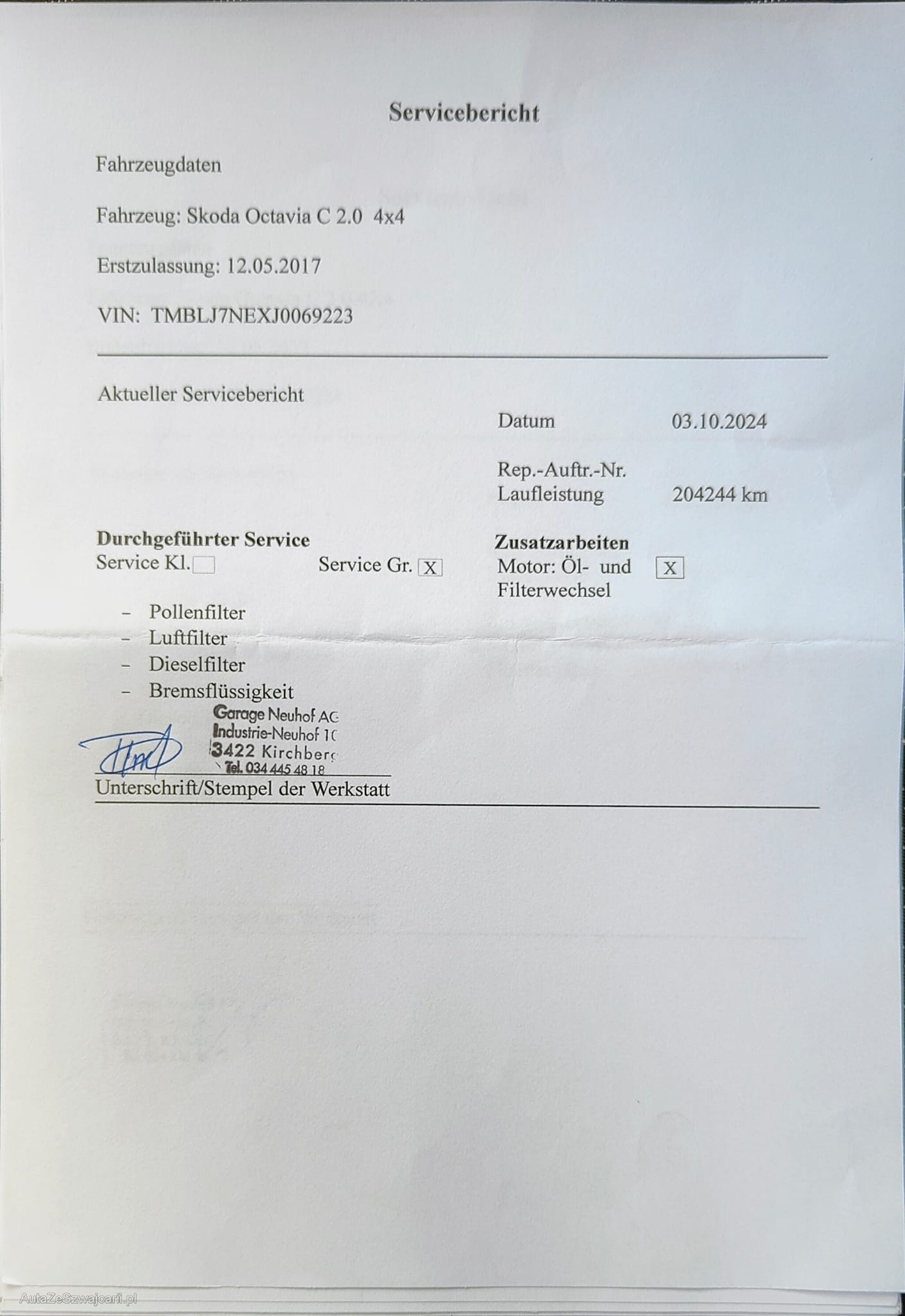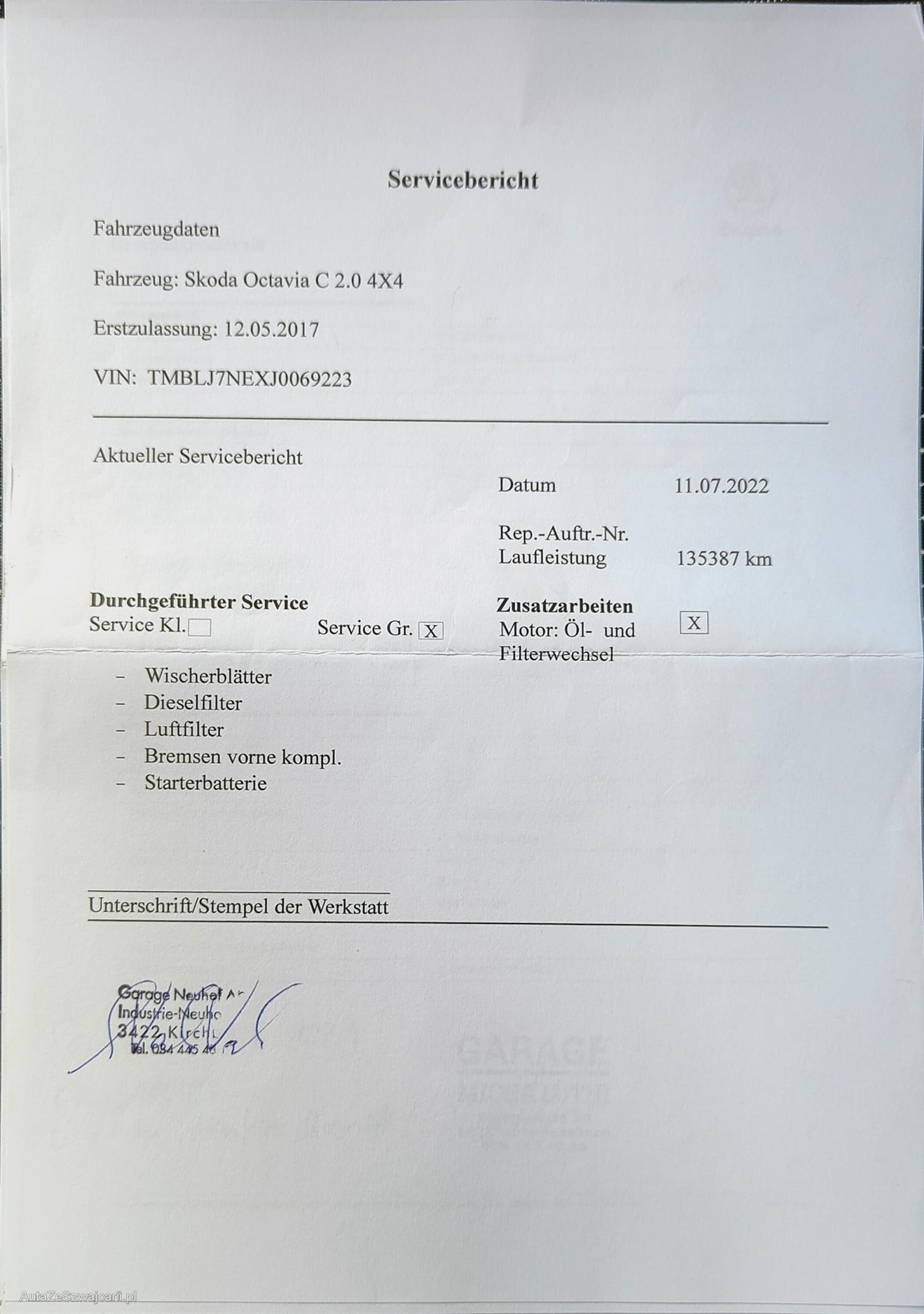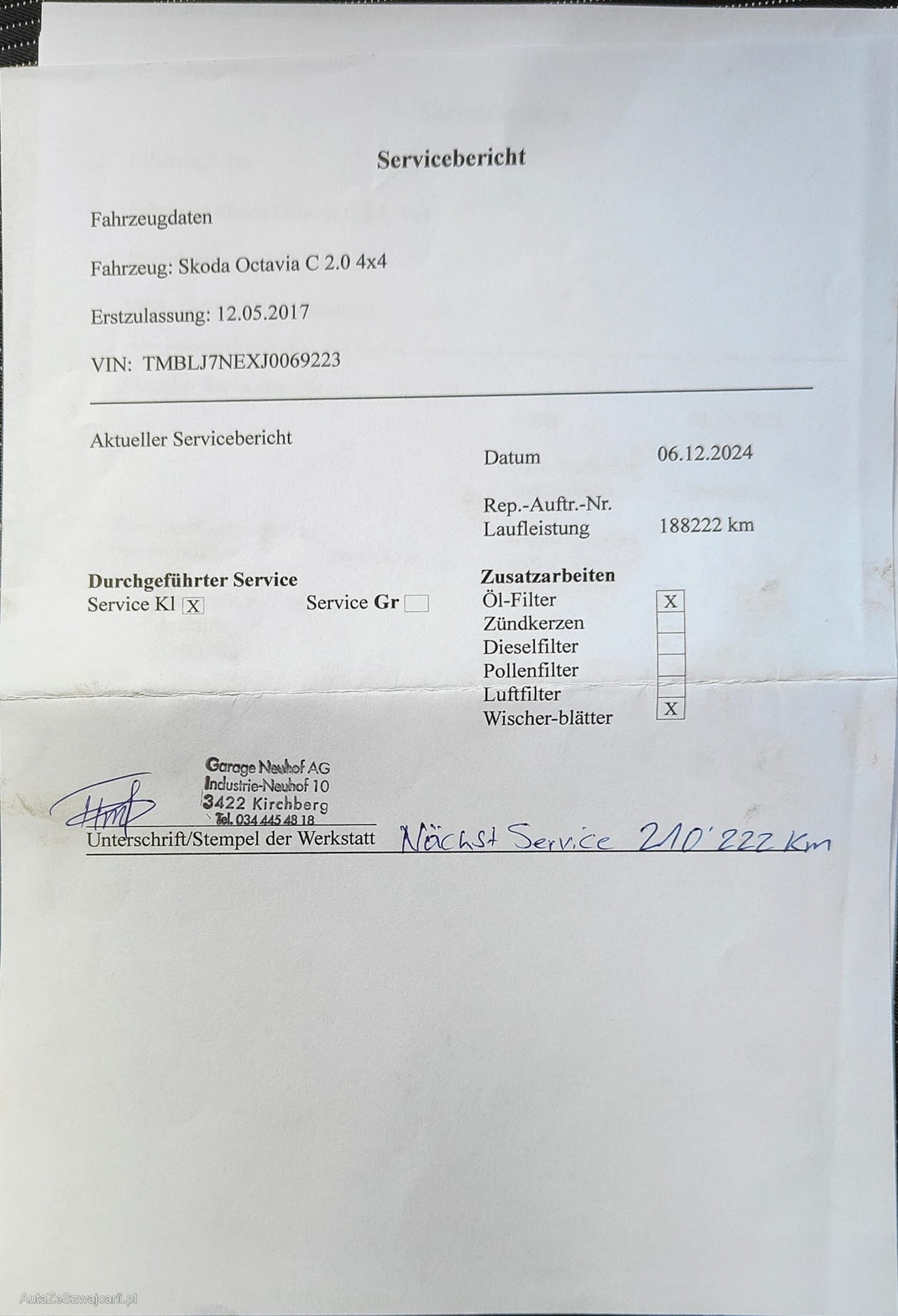 | Kommentar | - Div. Dellen und Kratzer - Fahrzeugbereifung, Fahrzeugzustand und Ausstattung gemäss Bildern. Unsere Fahrzeuge wurden keiner Prüfung unterzogen, Fahrzeugkauf auf eigenes Risiko ab Platz ohne Nachwährschaft. Das Gewährleisten für Sachmängel wird weggegangen. |
