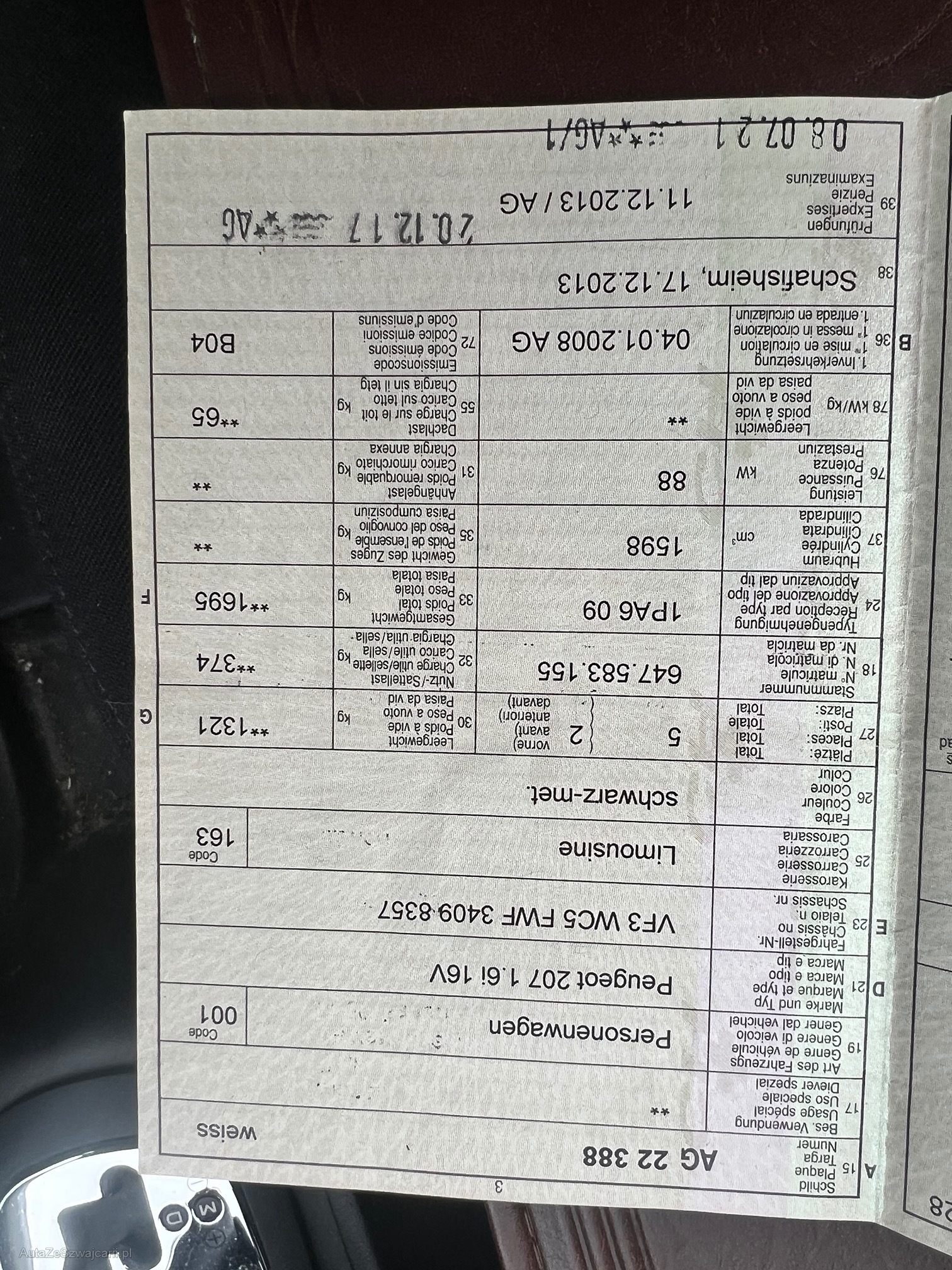 | Kommentar | Kein Werkstattest durchgeführt. Kundenvorstellung 1'000.- |