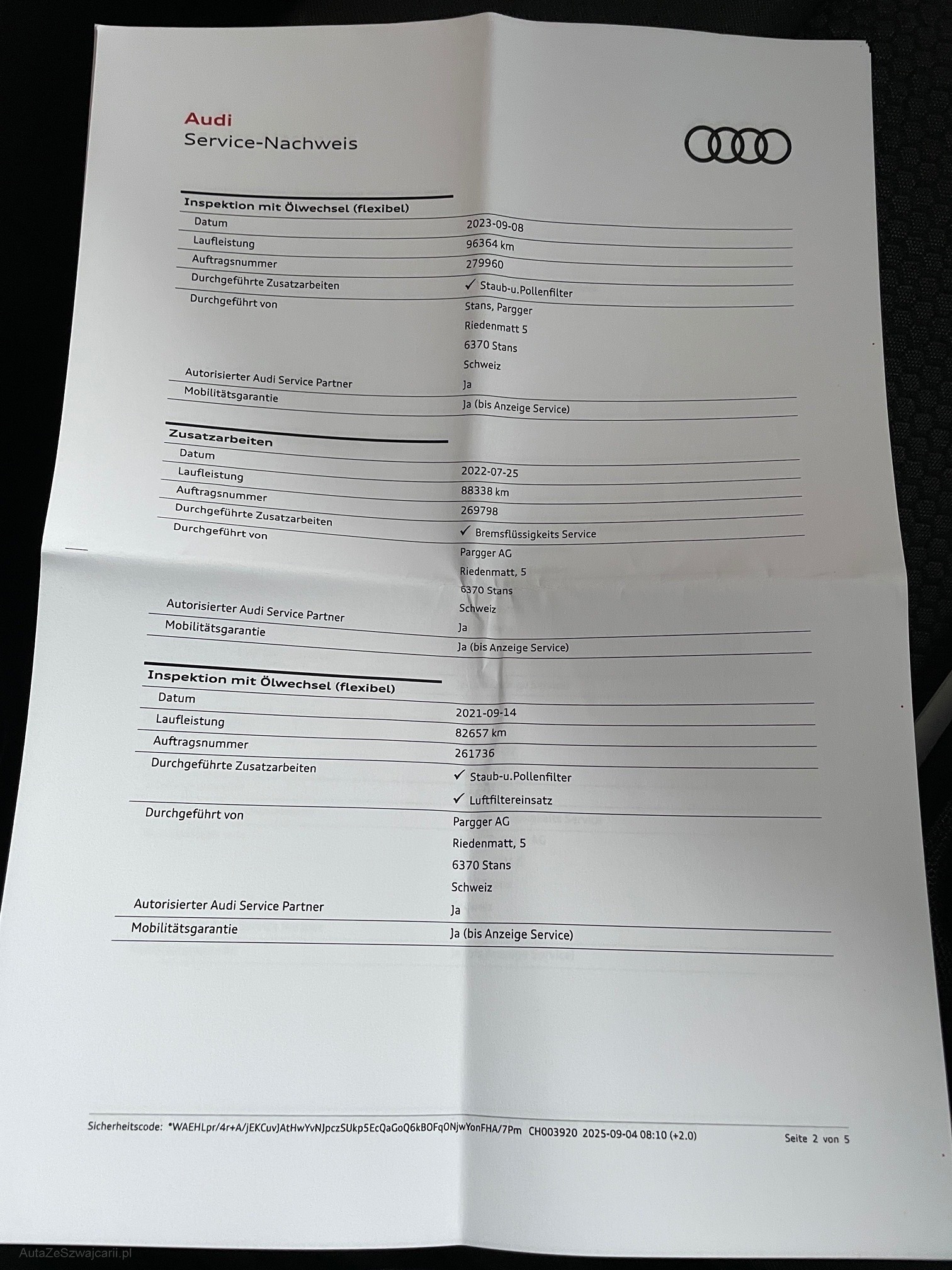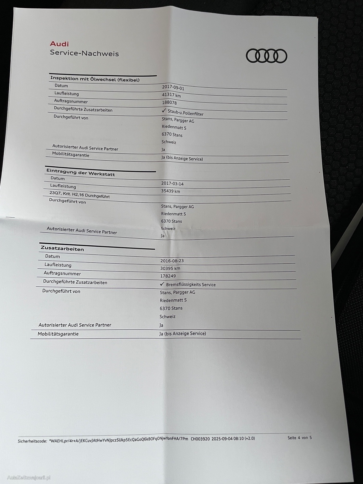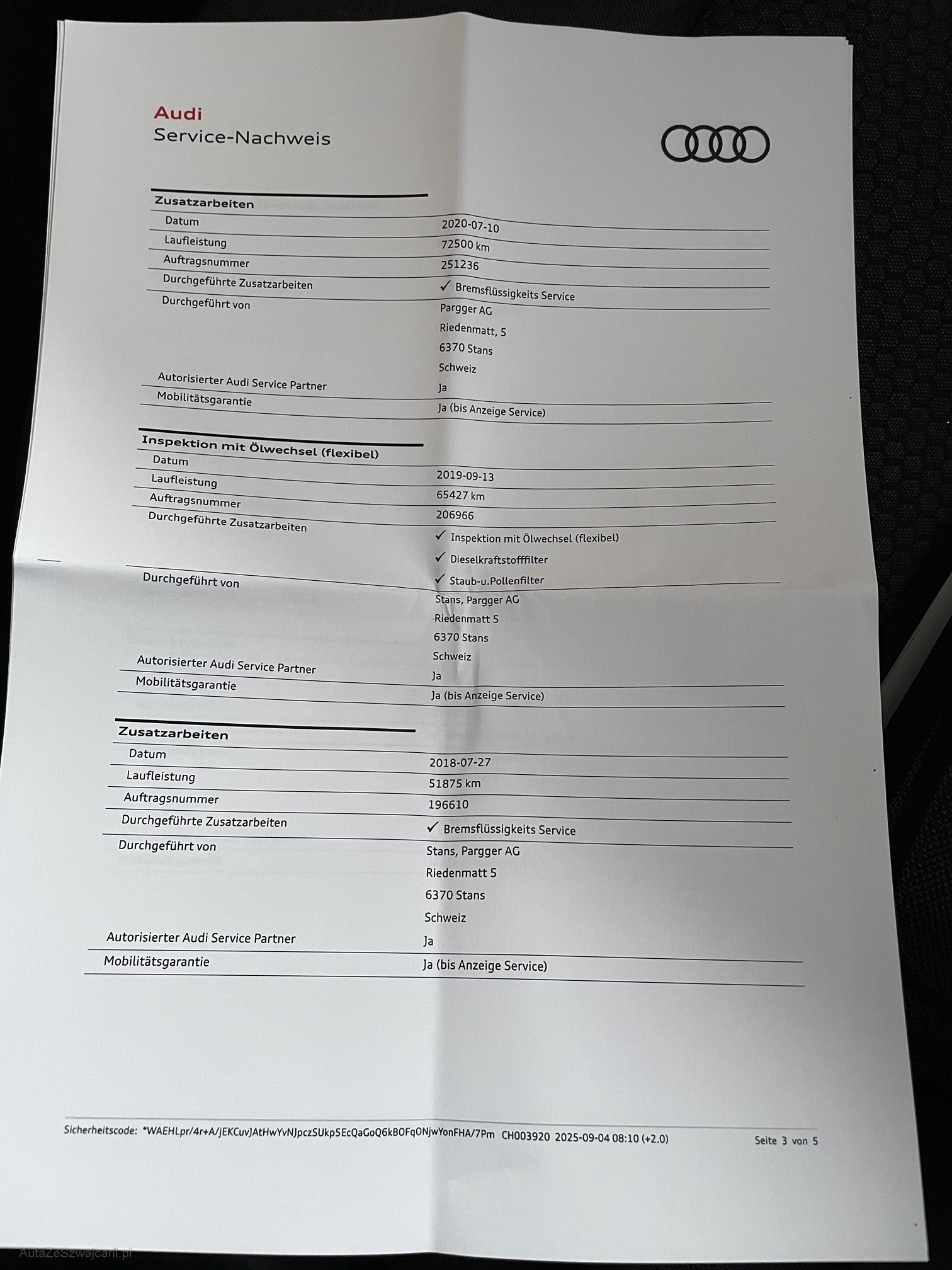 | Kommentar | Sehr gepflegtes Fahrzeug aus 1.Hand. Gute Ausstattung. MFK nicht bestanden wegen defektem Partikelfilter. Kein Werkstatttest und Funktionskontrolle durchgeführt. Ab Platz, ohne Garantie. Jede weitergehende gesetzliche Gewährleistung insbesondere Wandelung und Minderung werden abgelehnt. Im Kundenauftrag. |