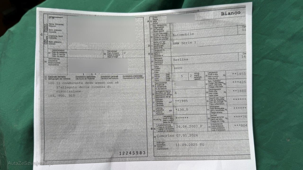| Fahrzeugausweis | Vorhanden |