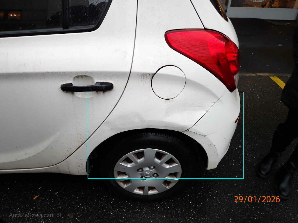 Schadenbedingt: Seitenwand und Stossstange hinten links
