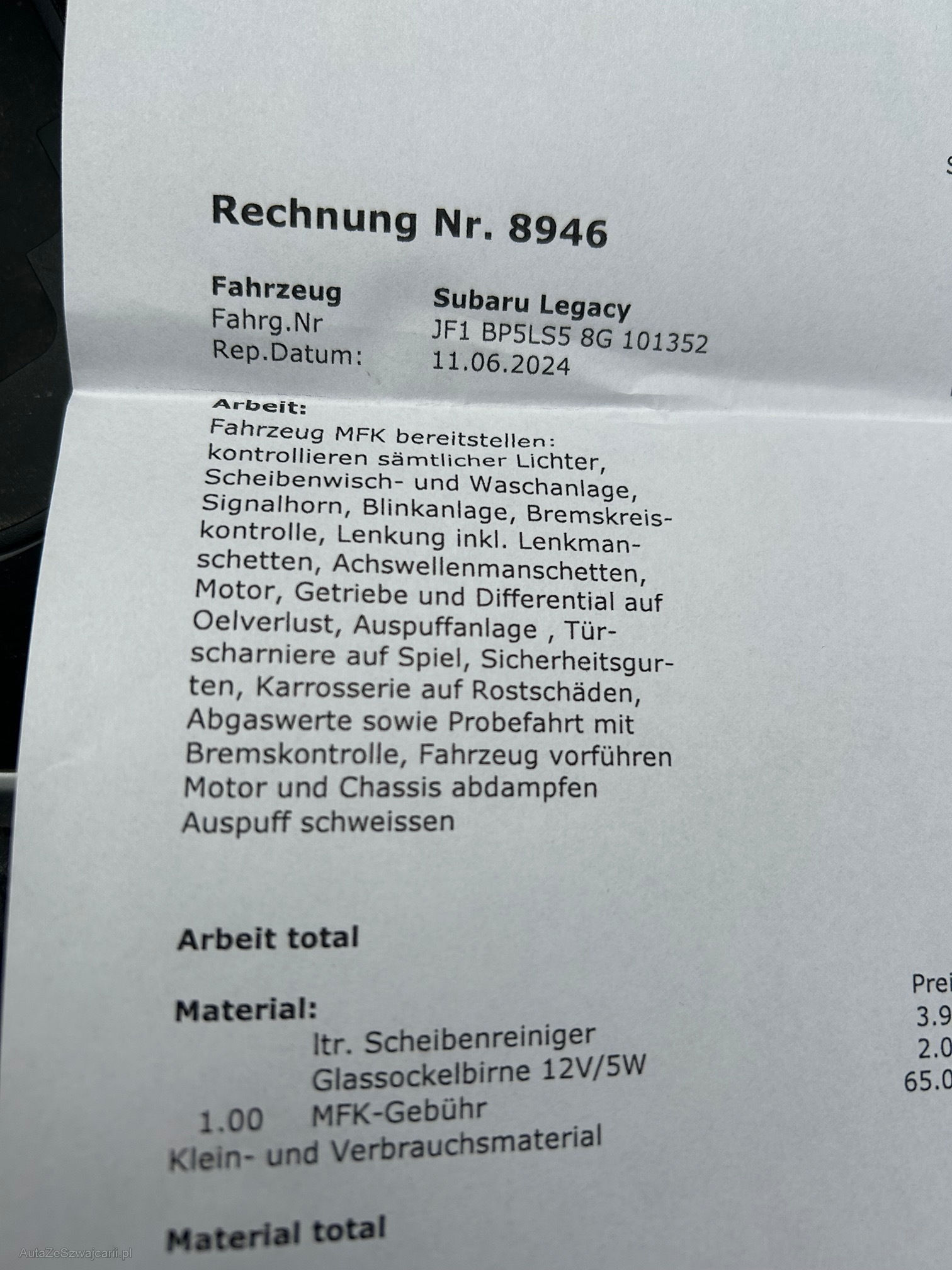| Rost am Fahrzeug | No |