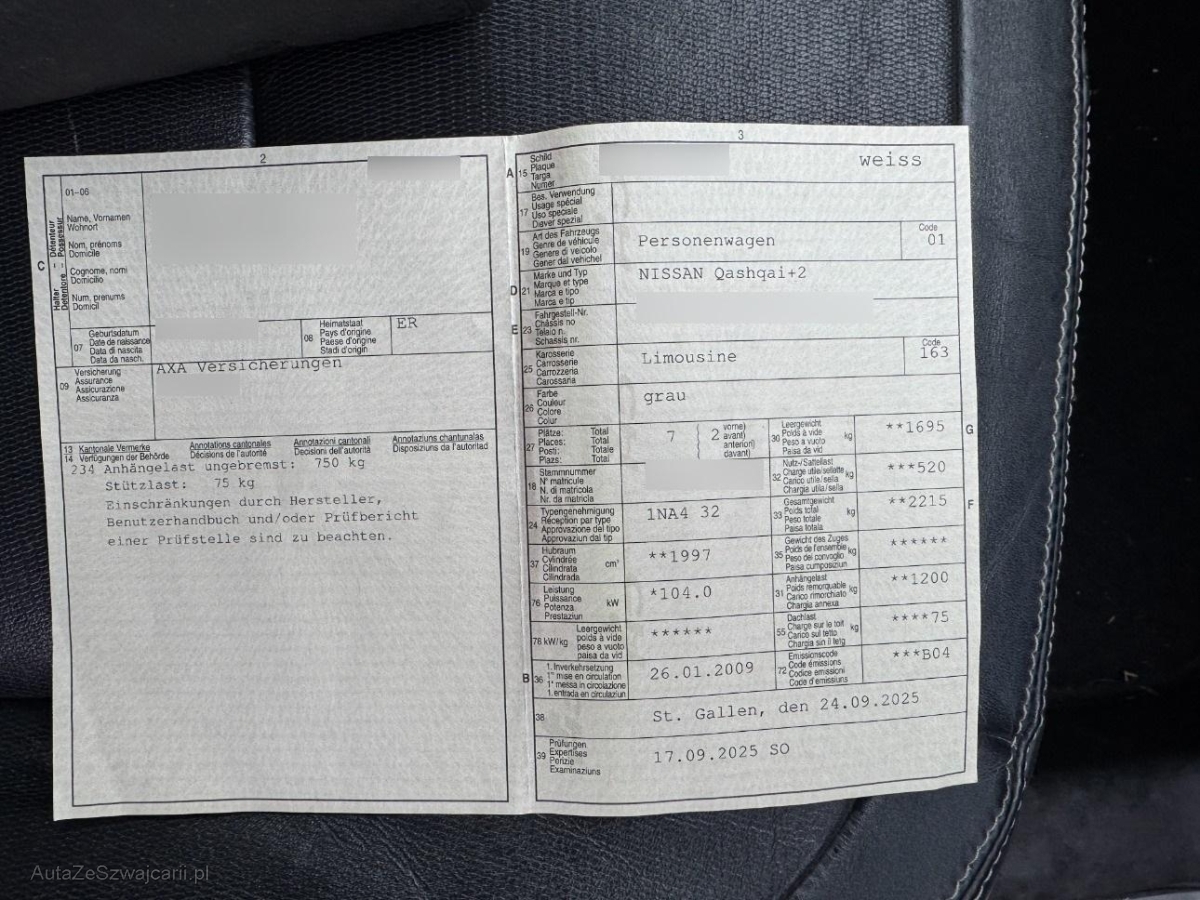 | Fahrzeugausweis | Vorhanden |