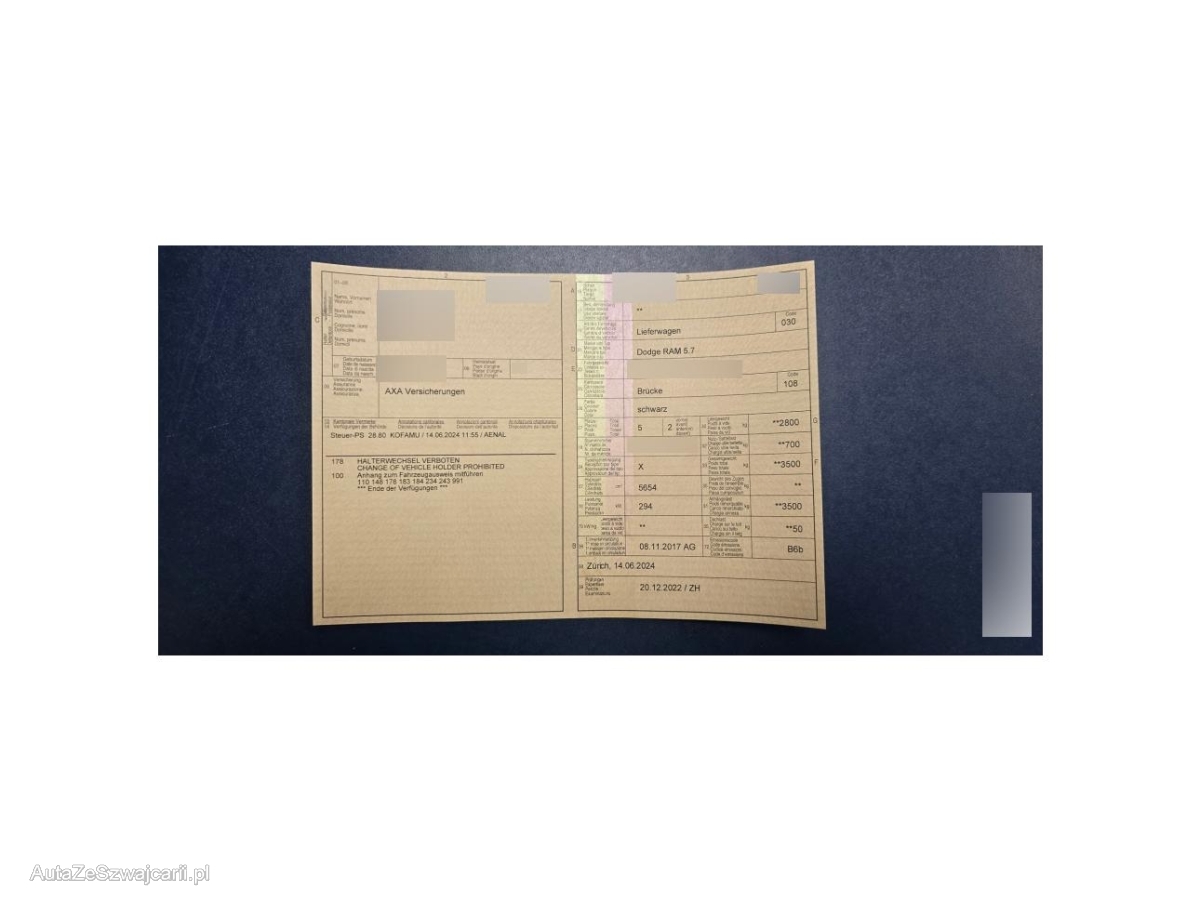 | Fahrzeugausweis | Vorhanden |